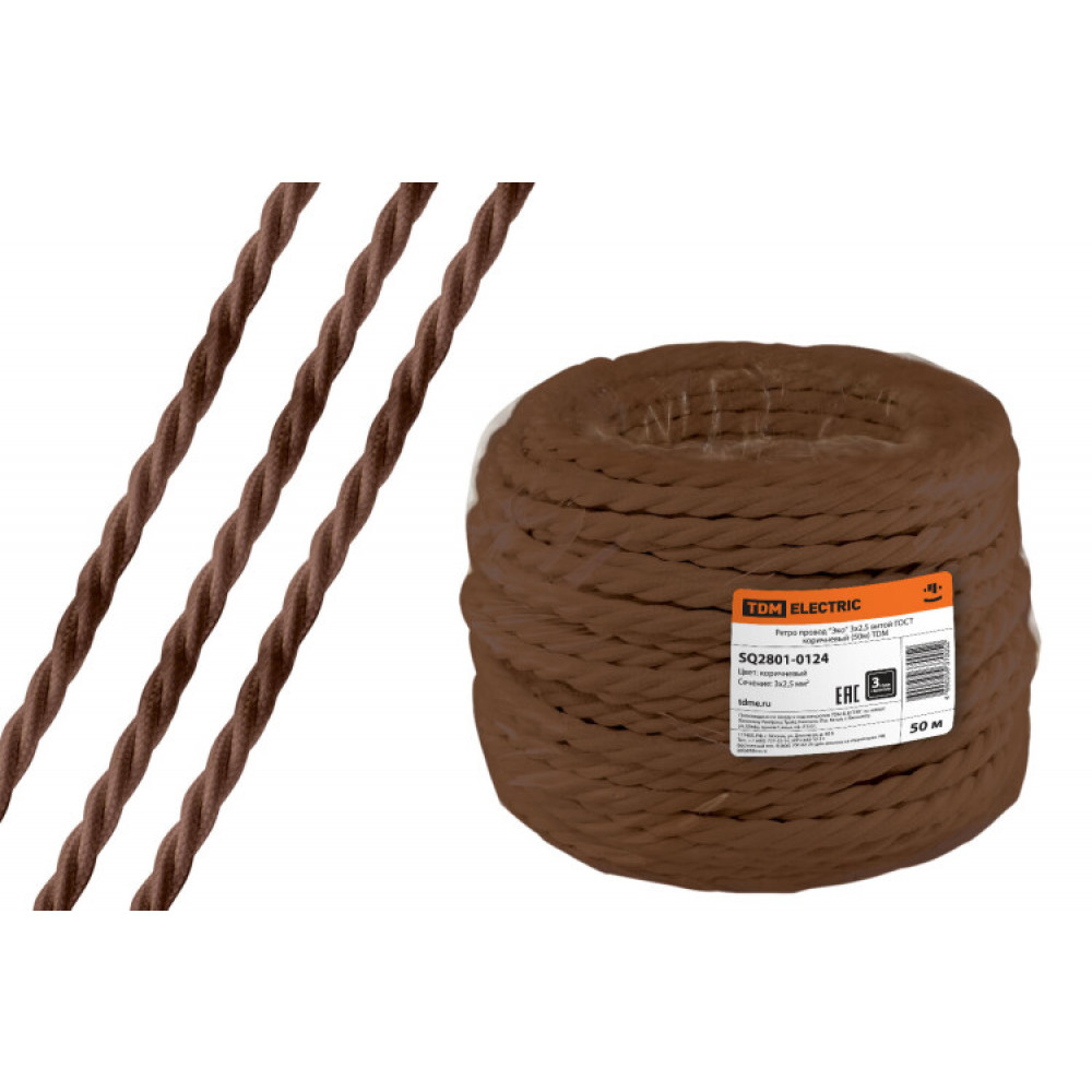 Доставка Ретро провод "Эко" 3х2,5 витой ГОСТ коричневый (50м) SQ2801-0124