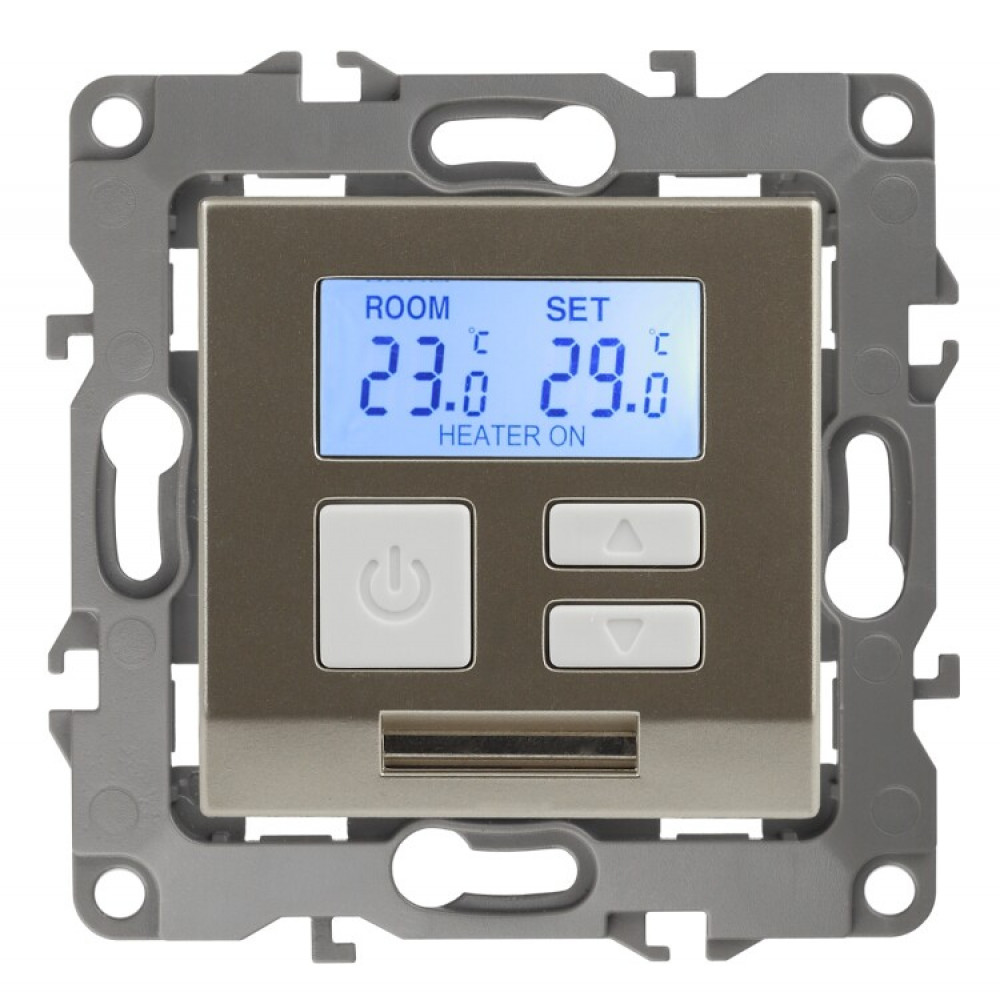 12-4111-04 Терморегулятор универс. 230В-Imax16А, IP20, 2, шампань (6/60/1200) Б0031274, Терморегулятор скрытого монтажа