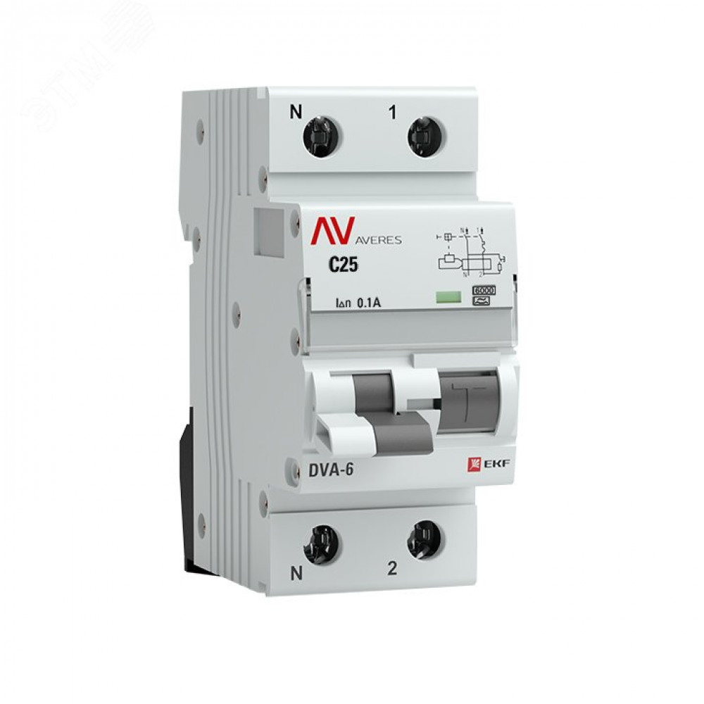 Описание Дифференциальный автомат DVA-6 1P+N 25А (C) 100мА (A) 6кА AVERES rcbo6-1pn-25C-100-a-av