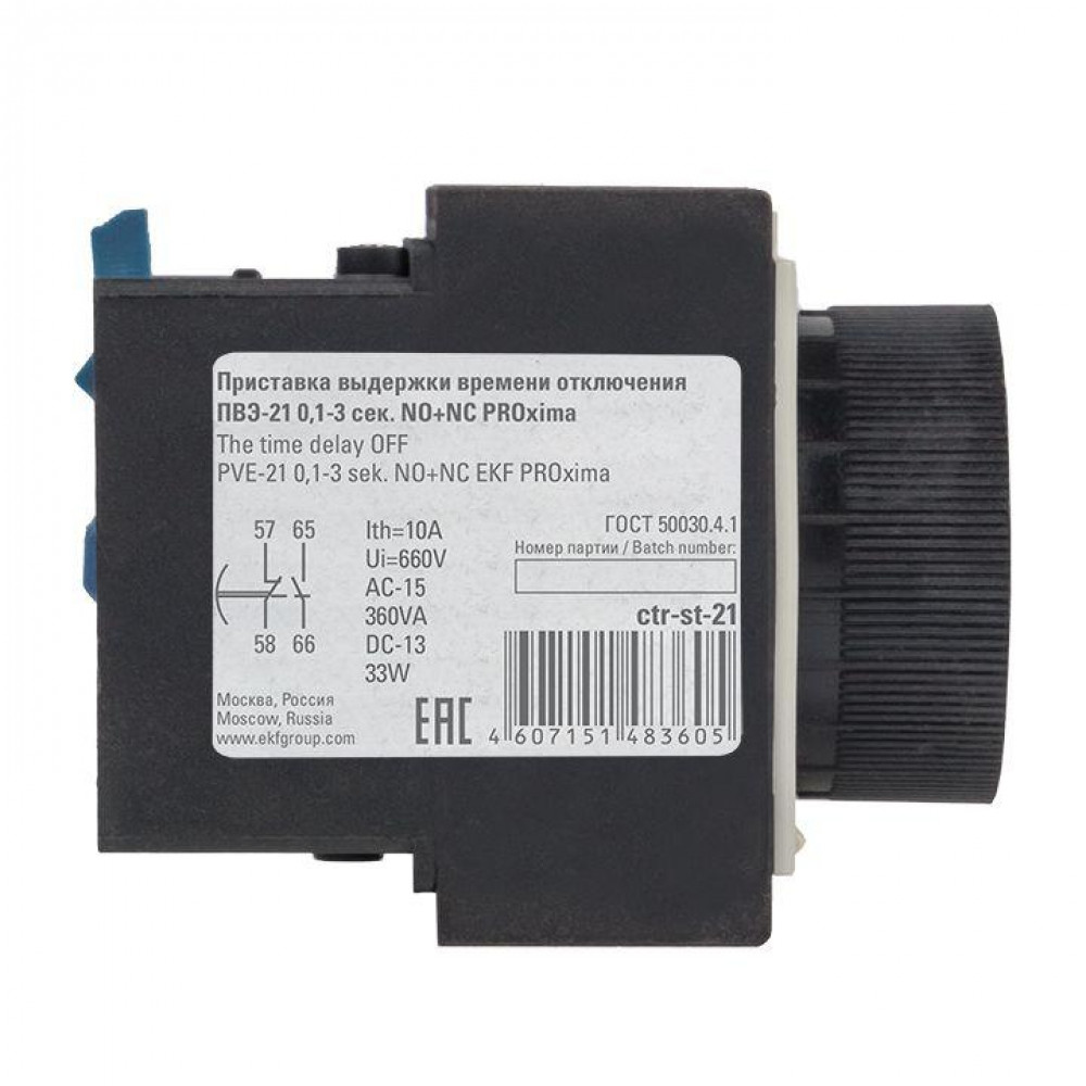 Приставка выдержки времени отключения ПВЭ-21 0,1-3сек NO+NC PROxima ctr-st-21, Элемент вспомогательный и аксессуар к пускателю и контактору