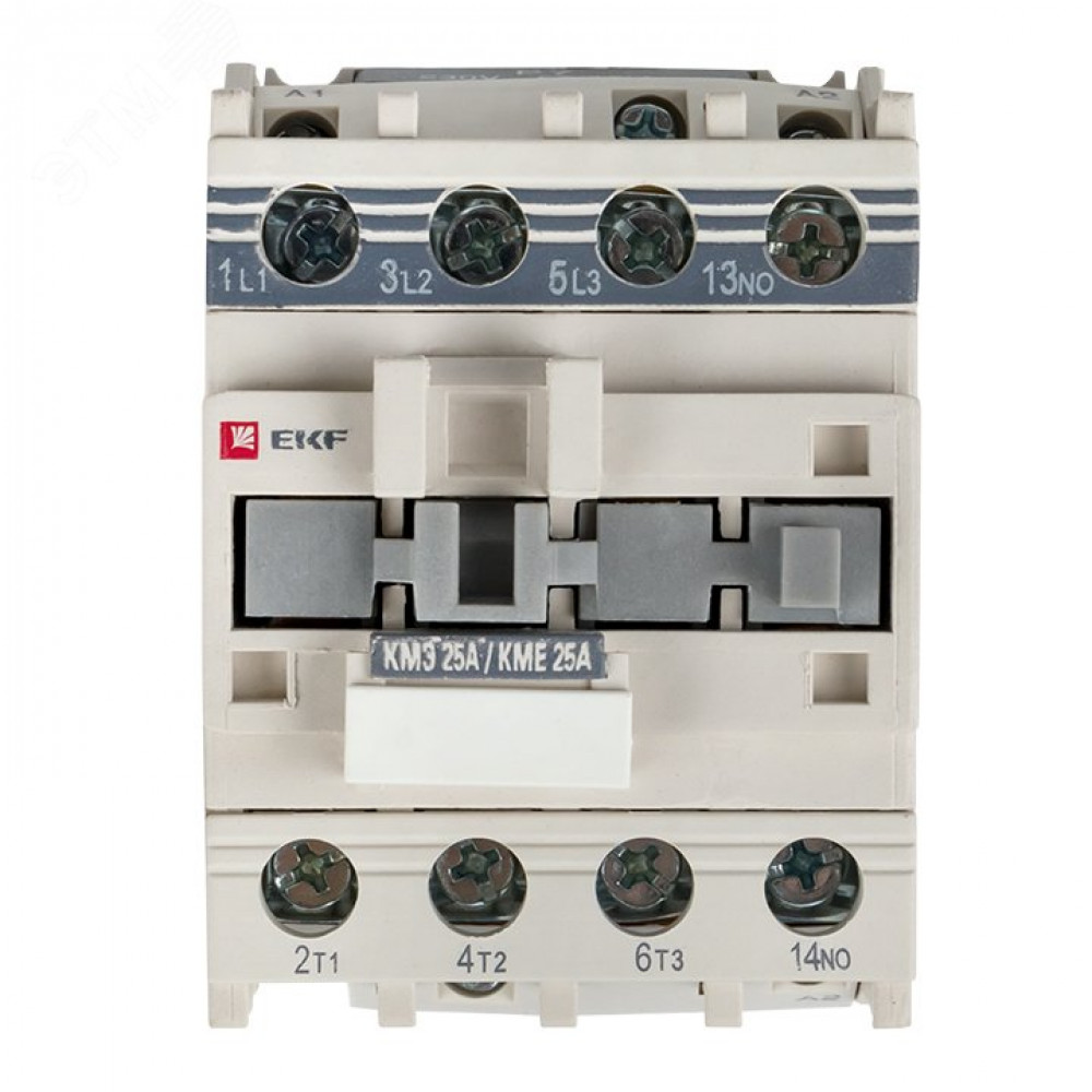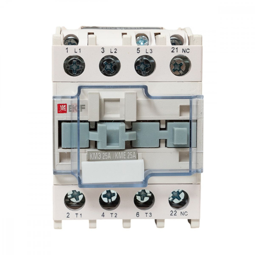 Контакторы КМЭ EKF PROxima состоят из корпуса, закрепленных в нем неподвижных контактов, подвижных контактов, которые закреплены в подвижной части магнитной системы. Неподвижная часть магнитной системы закреплена жестко в корпусе КМЭ. Пружина препятствует смыканию контактов. При подаче напряжения на катушку управления в магнитной системе контактора возникает магнитное поле, которое, преодолевая сопротивление пружины, смыкает магнитную систему и замыкает контакты. При отключении напряжения с катушки управления пружина размыкает контакты. Возможна коммутация алюминиевыми медным проводом.