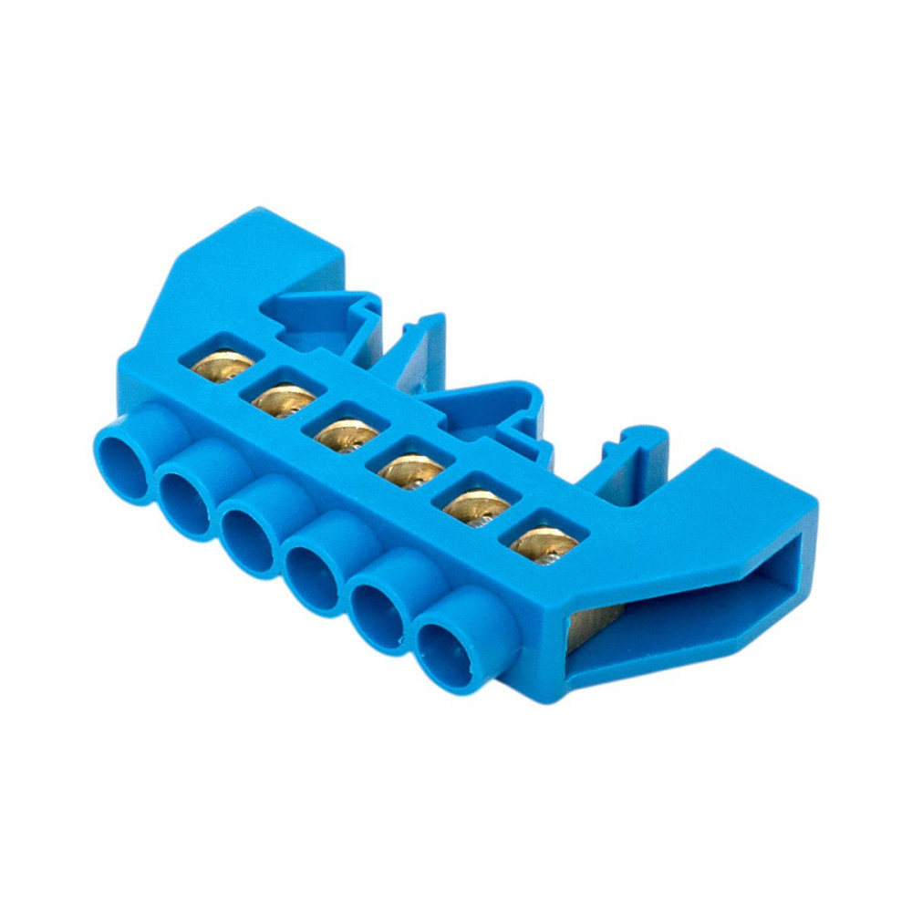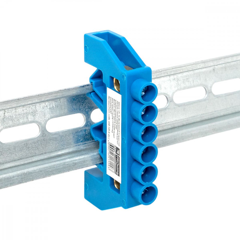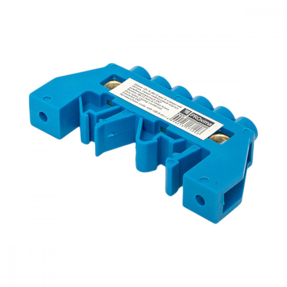 Шина "0" N (8х12мм) 6 отверстий латунь синий нейлоновый корпус комбинированный розничный стикер PROxima sn0-125-6-dn-r, Блок клеммный и нулевая шина