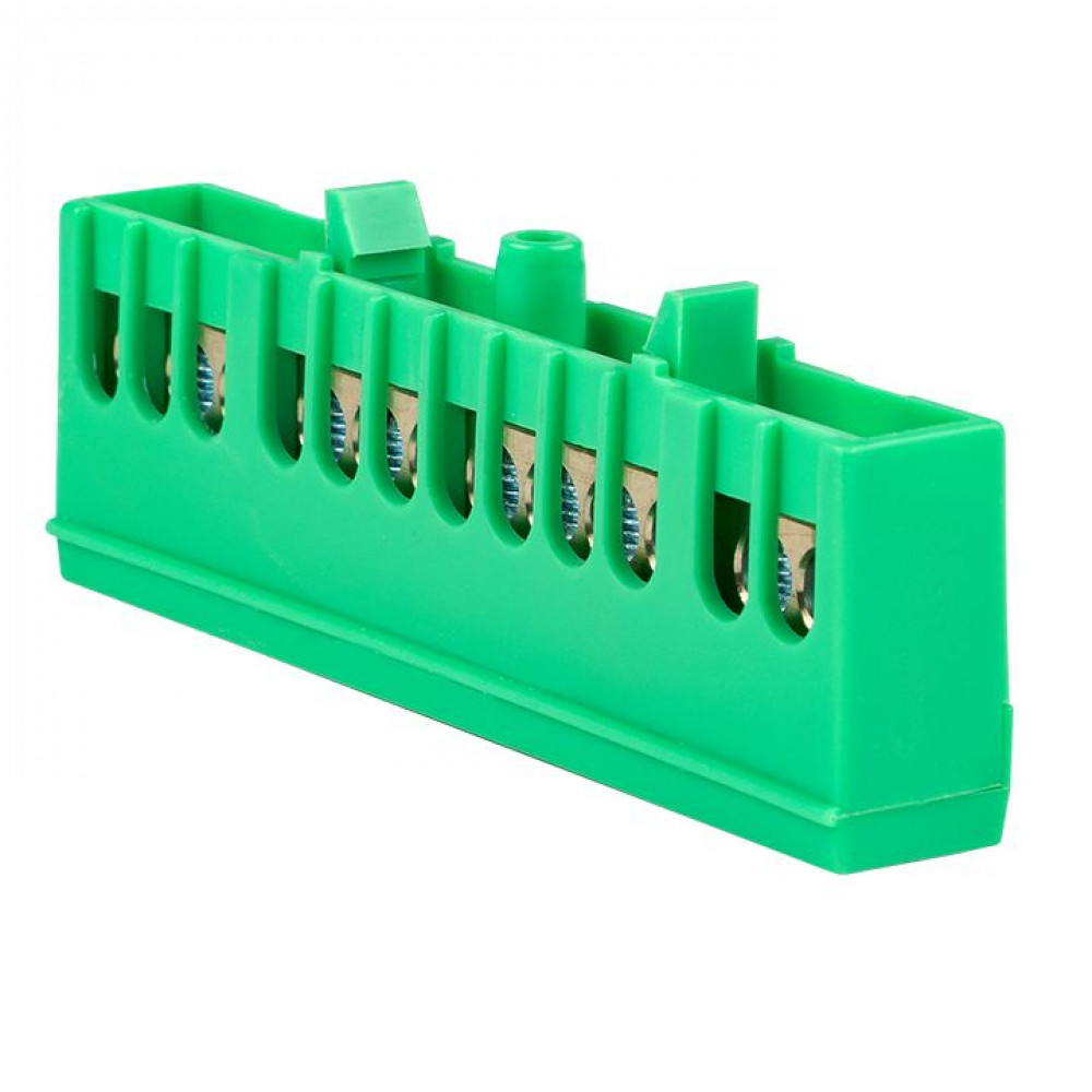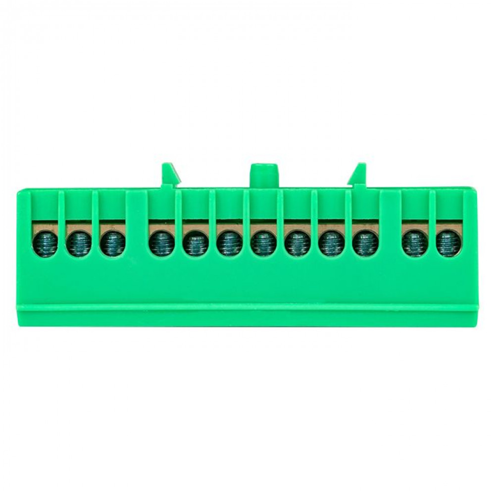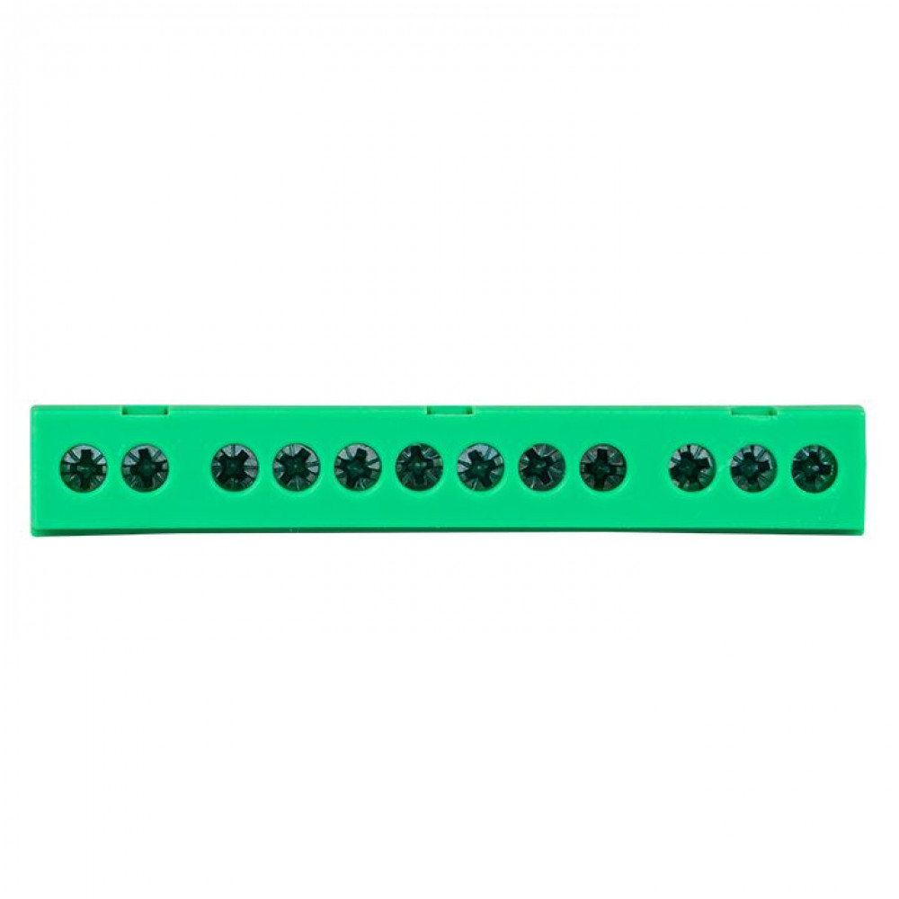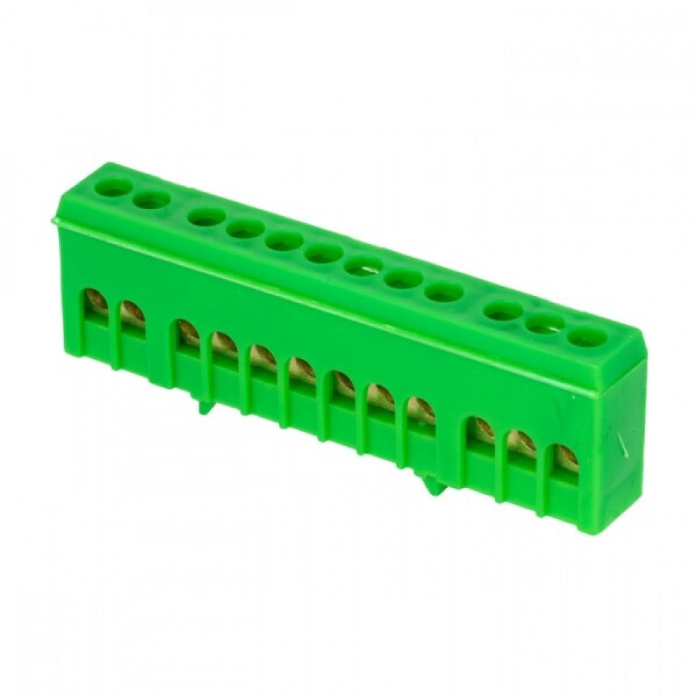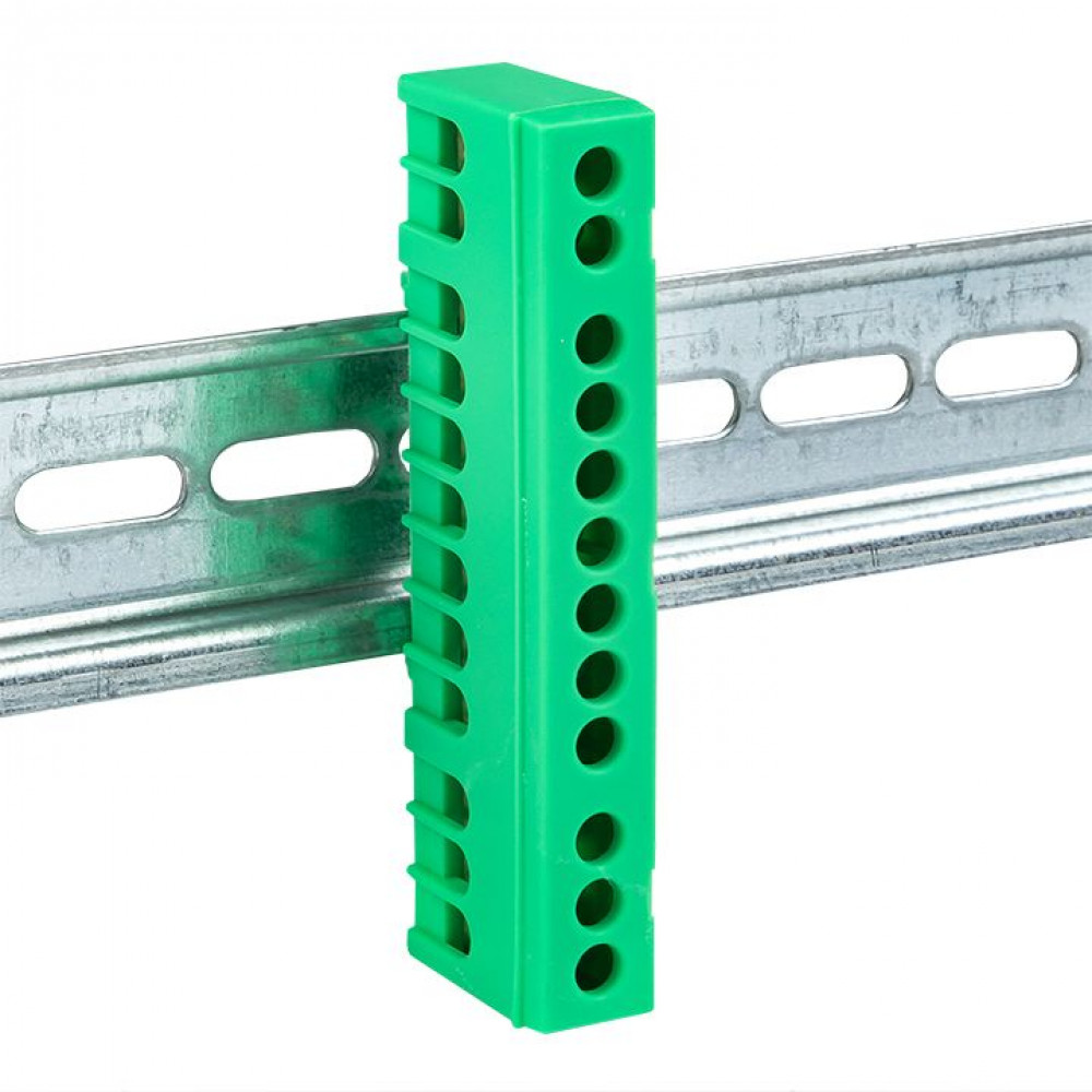 Шина "0" PE (6х9мм) 12 отверстий латунь зеленый изолированный корпус на DIN-рейку PROxima sn0-63-12-ig, Блок клеммный и нулевая шина