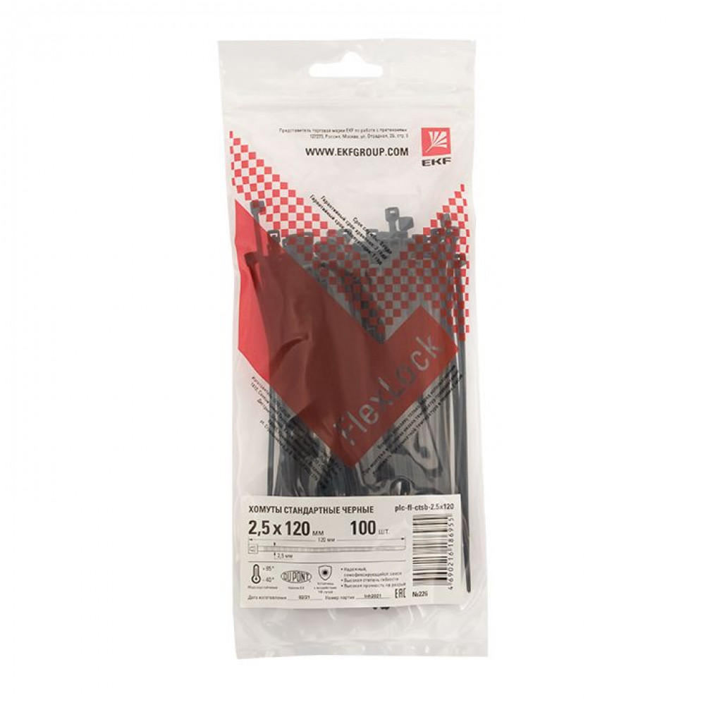 Хомут P6.6 стандартный (ч), 2.5x120 (100шт) FlexLock PROxima plc-fl-ctsb-2.5x120