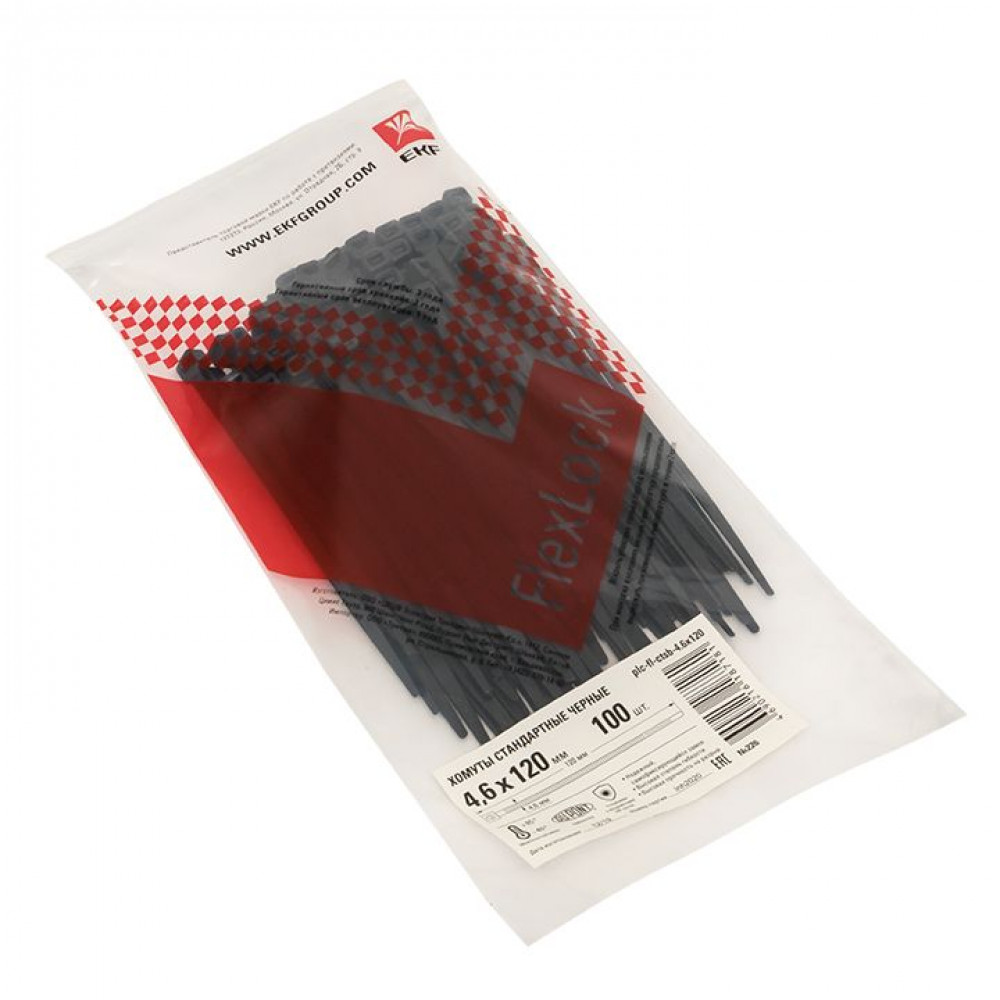 Хомут P6.6 стандартный (ч), 4.6x120 (100шт) FlexLock PROxima plc-fl-ctsb-4.6x120
