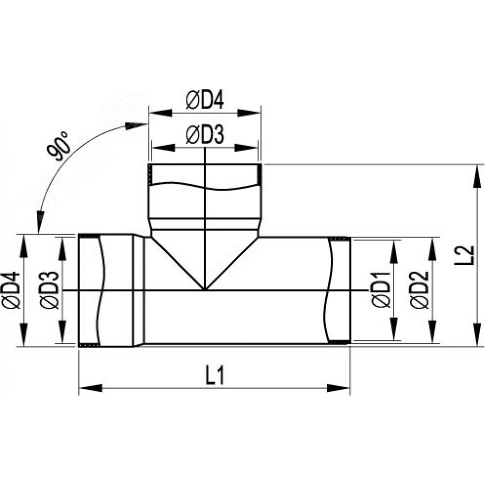 Описание Тройник для двустенных труб, 90 град., полипропилен, д.90мм 020090