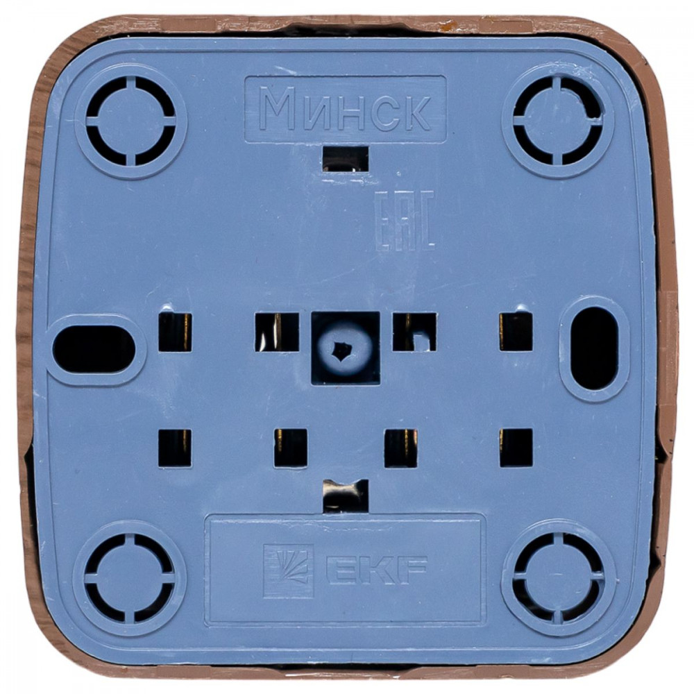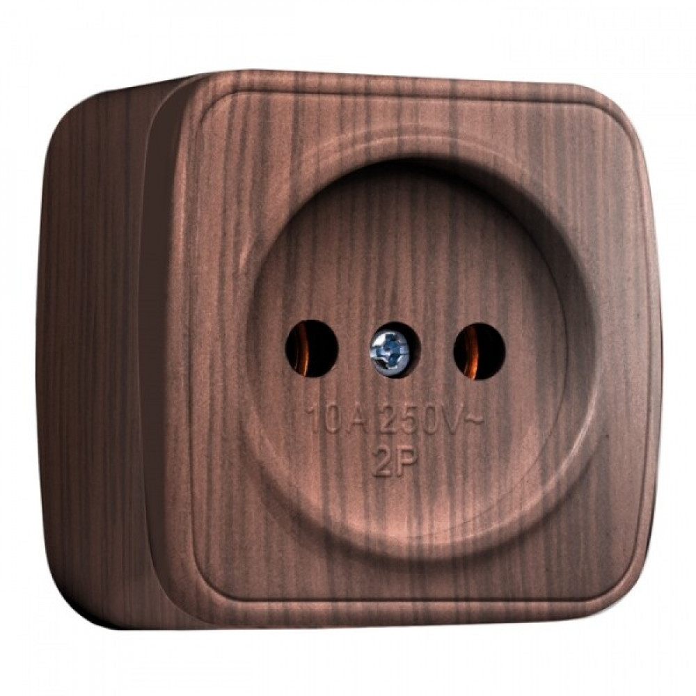 Розетка 1-местная ОП Минск 10А без заземления тёмное дерево EGR10-022-40, Розетка открытого монтажа
