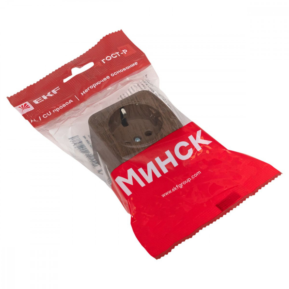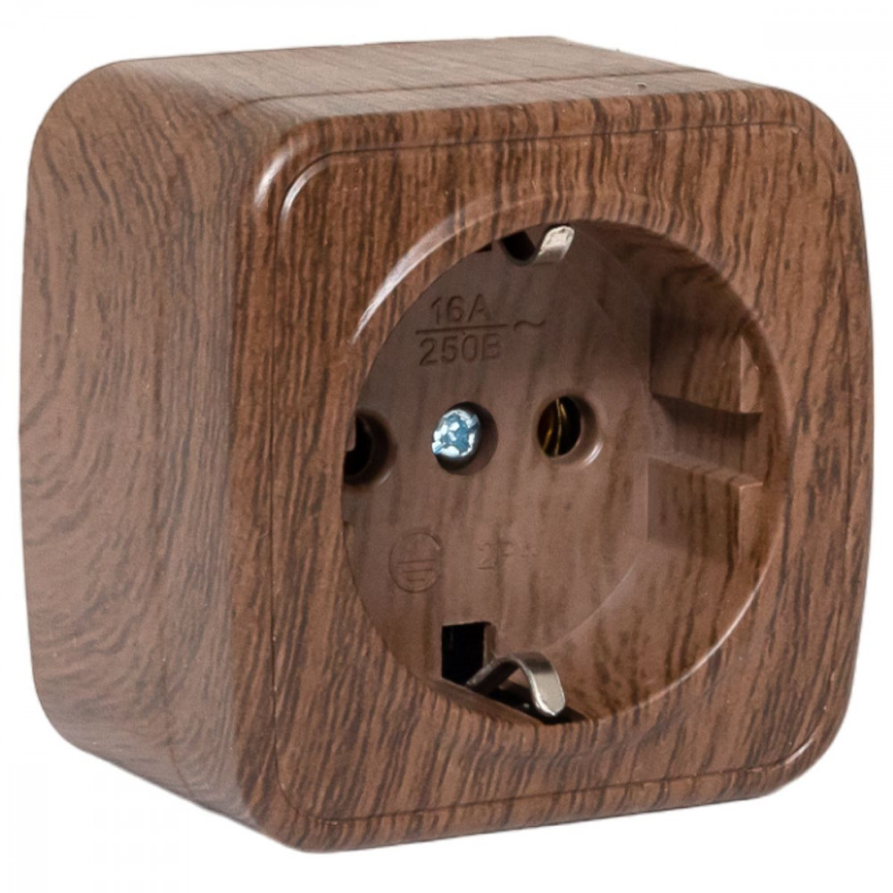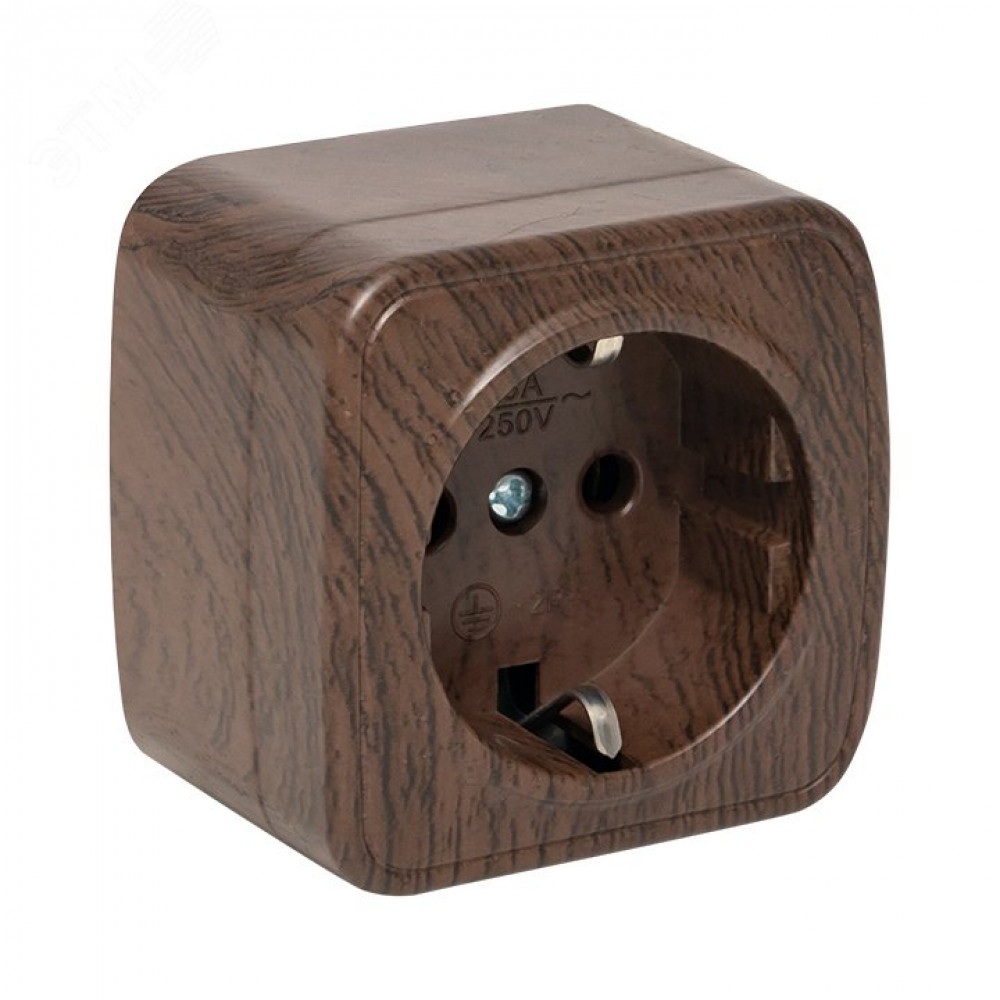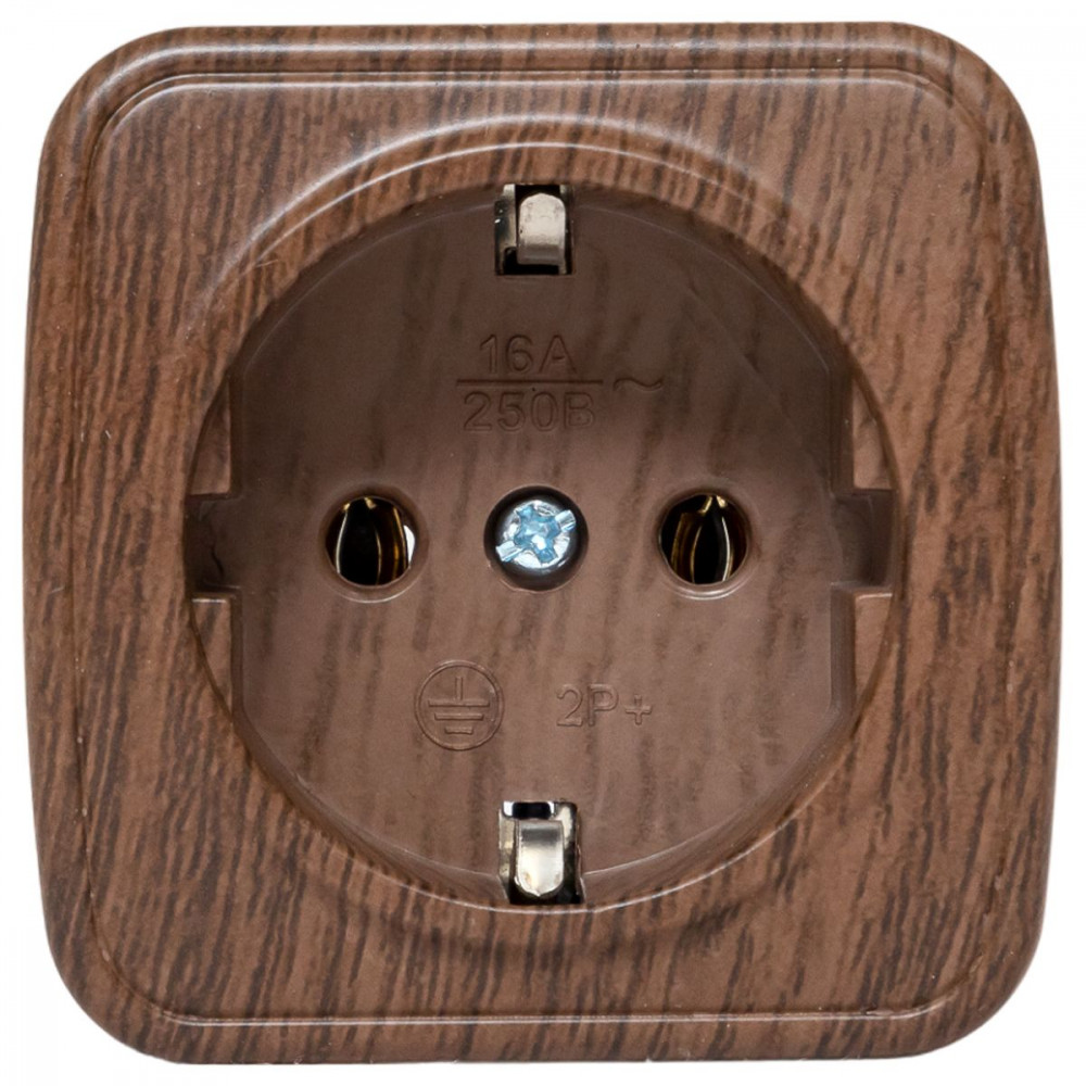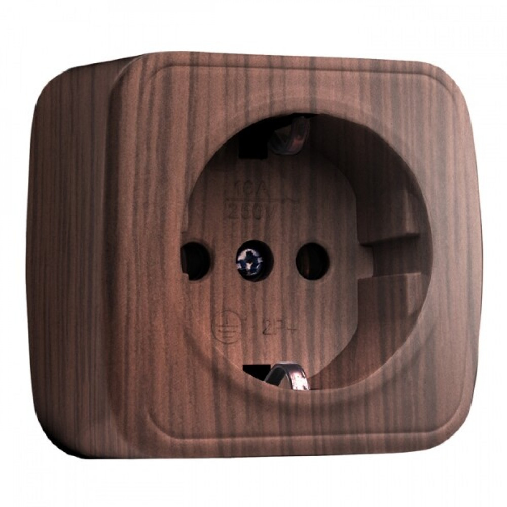Розетка 1-местная ОП Минск 16А с заземлением тёмное дерево EGR16-028-40, Розетка открытого монтажа