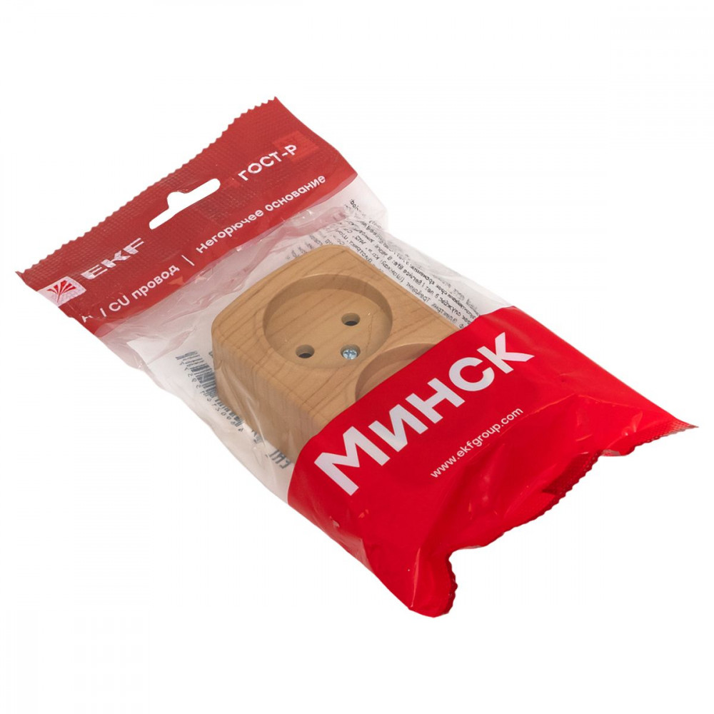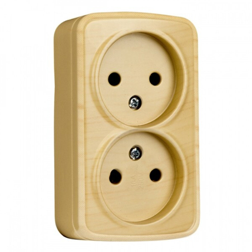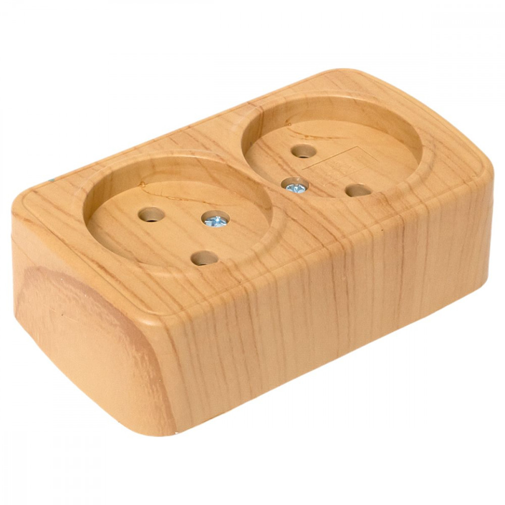 Розетка 2-местная ОП Минск 10А без заземления светлое дерево EGR10-102-30, Розетка открытого монтажа
