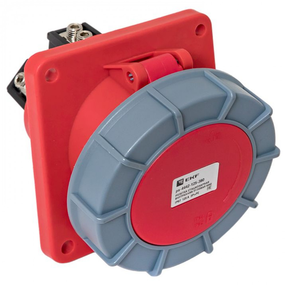 Розетка стационарная внутренняя угловая 4442 3Р+РЕ 125А 380В IP67 PROxima ps-4442-125-380, Разъем силовой и модуль комбинируемый