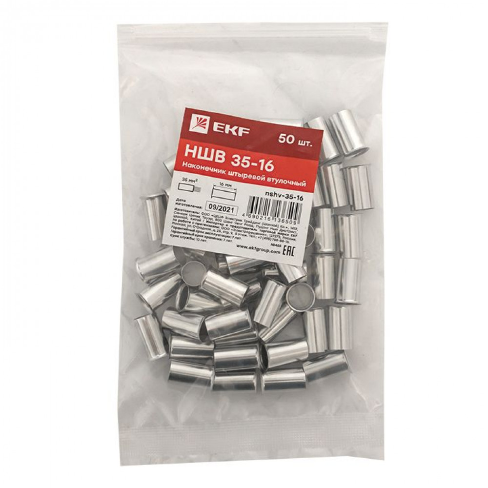 Наконечник штыревой втулочный НШв 35.0-16 (уп50шт) PROxima nshv-35-16, Наконечник, гильза