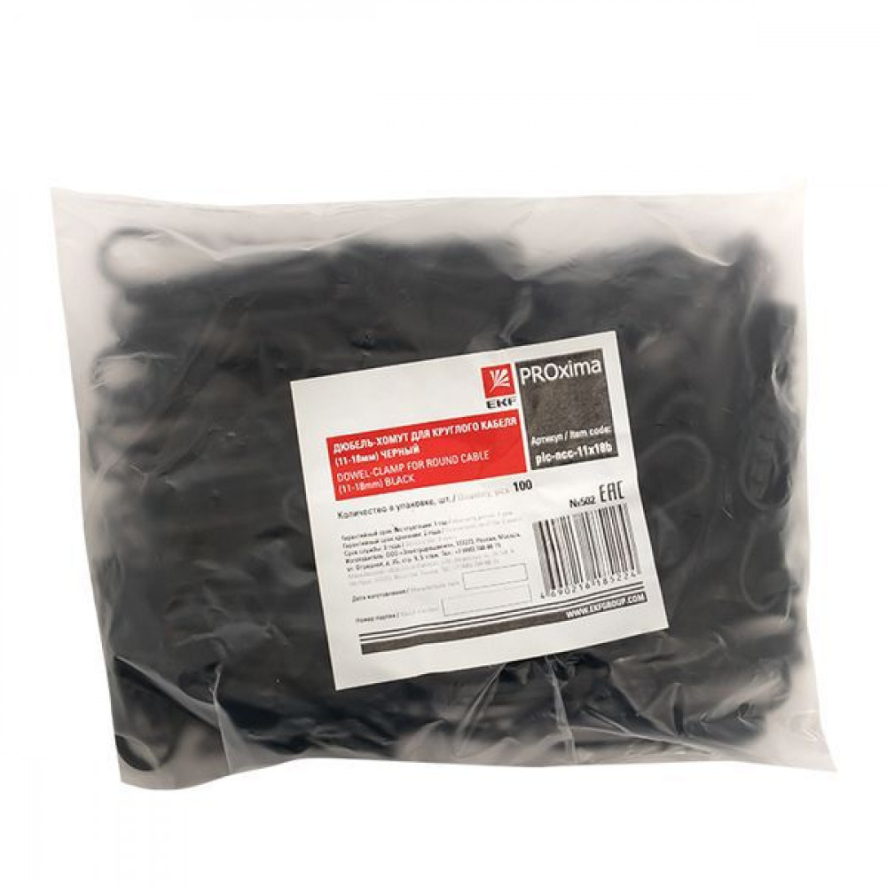 Описание Дюбель-хомут для круглого кабеля (11-18мм) черный (100шт.) PROxima plc-ncc-11x18b