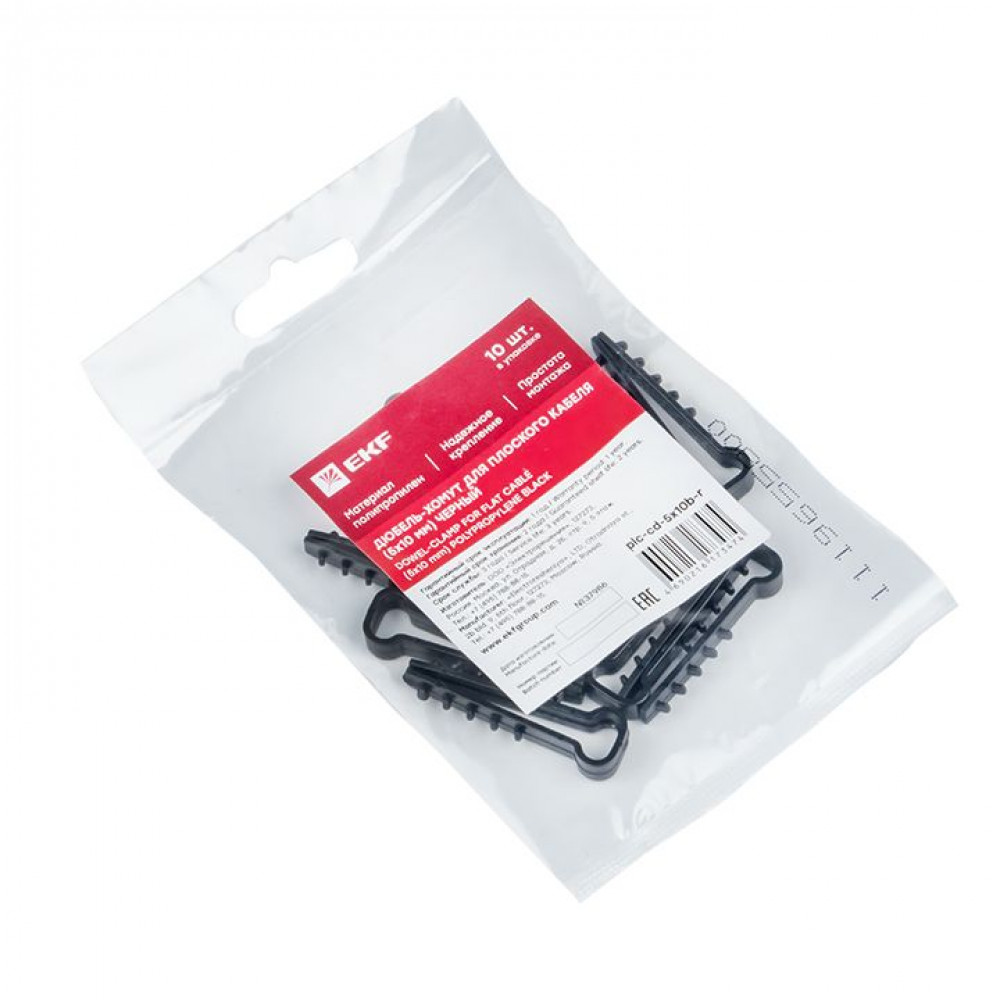 Описание Дюбель-хомут (5х10 мм) для плоского кабеля черный (10 шт.) PROxima plc-cd-5x10b-r