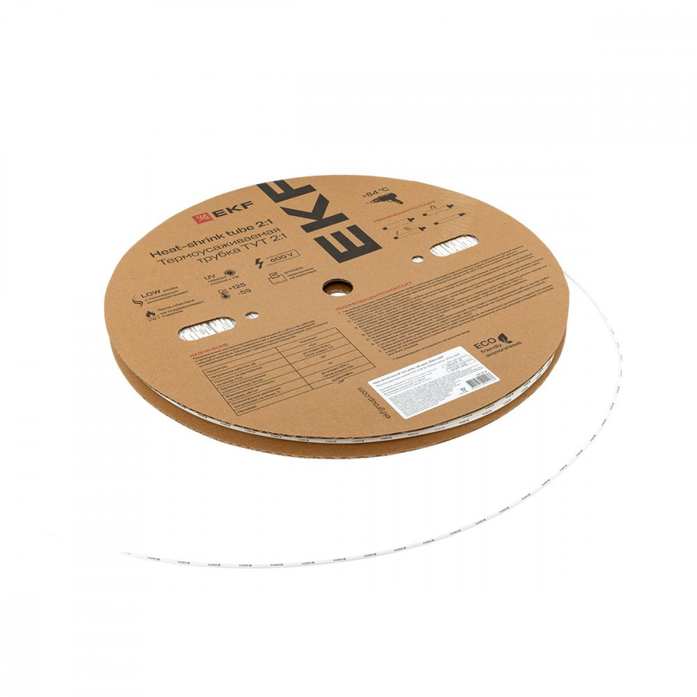 Описание Термоусаживаемая трубка ТУТ нг 2/1 белая рулон PROxima tut-2-w