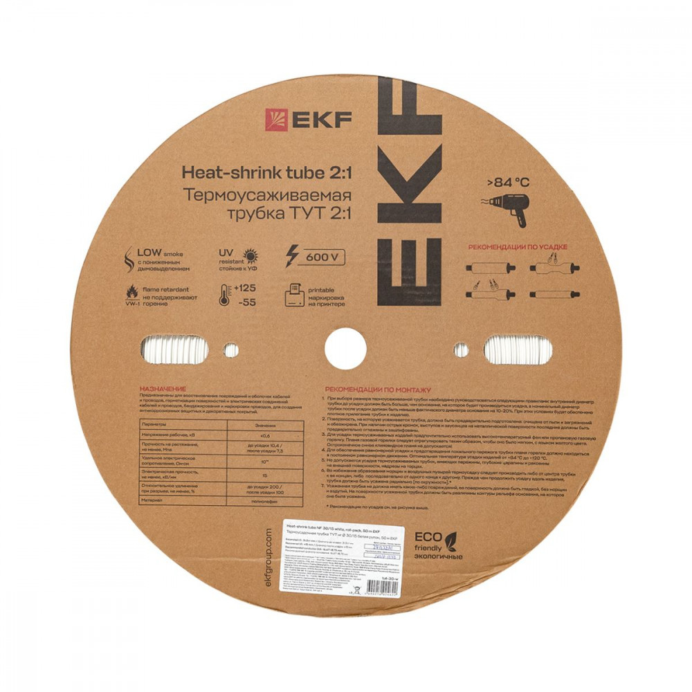 Описание Термоусаживаемая трубка ТУТ нг 30/15 белая рулон PROxima tut-30-w