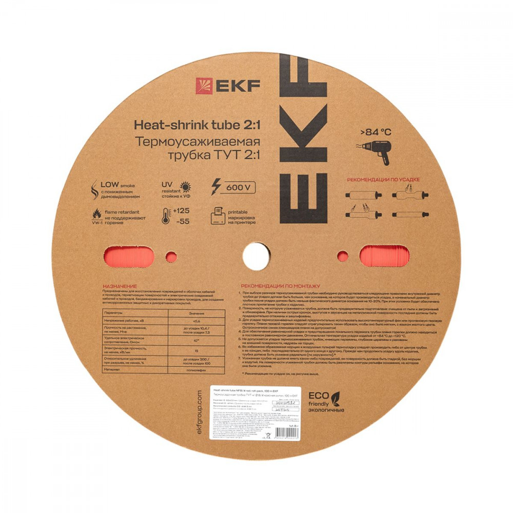 Термоусаживаемая трубка ТУТ нг 8/4 красная рулон PROxima tut-8-r, Изделие термоусаживаемое