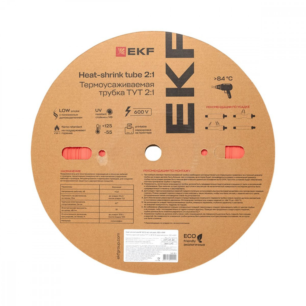 Описание Термоусаживаемая трубка ТУТ нг 10/5 красная рулон PROxima tut-10-r