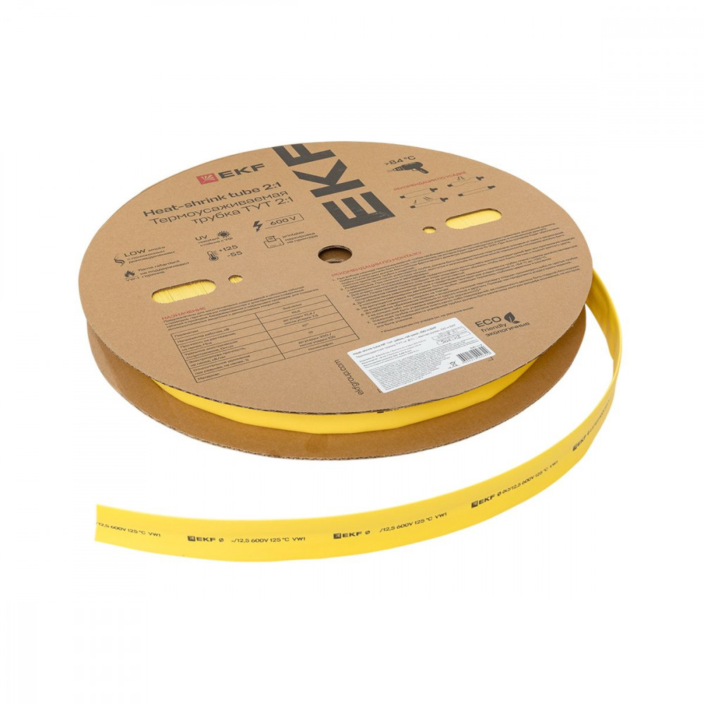 Описание Термоусаживаемая трубка ТУТ нг 40/20 желтая рулон PROxima tut-40-y