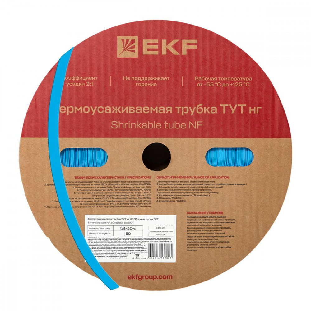 Термоусаживаемая трубка ТУТ нг 30/15 синяя рулон PROxima tut-30-g, Изделие термоусаживаемое