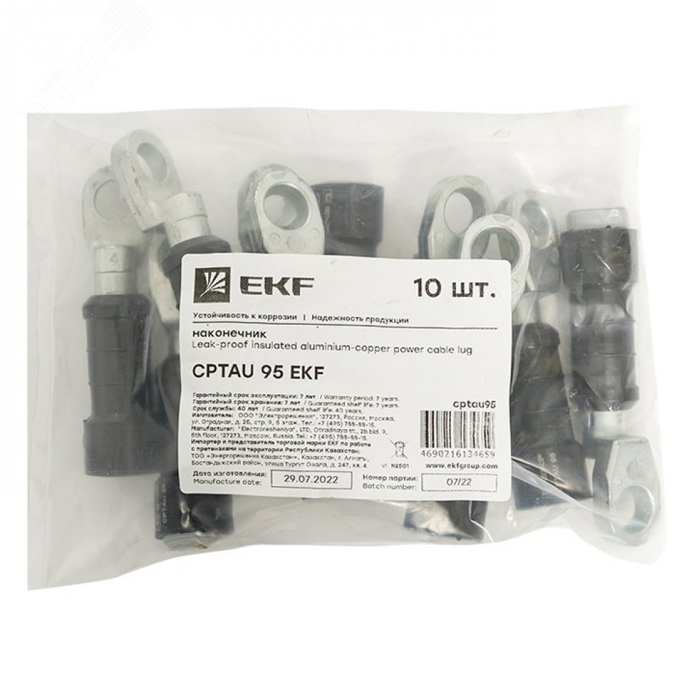 Герметичные изолированные наконечники типа cptau предназначены для соединения СИП с электрооборудованием. Может использоваться для алюминиевых и медных шин. Создают герметичное соединение. Внутренняя часть заполнена контактной смазкой. Монтаж производится методом опрессовки с помощью пресс-клещей. Заглушки разных цветов для визуального определения сечения. Наконечник устойчив к ультрафиолетовому и солнечному излучению, высоким и низким температурам, коррозии и агрессивным атмосферным воздействиям.
