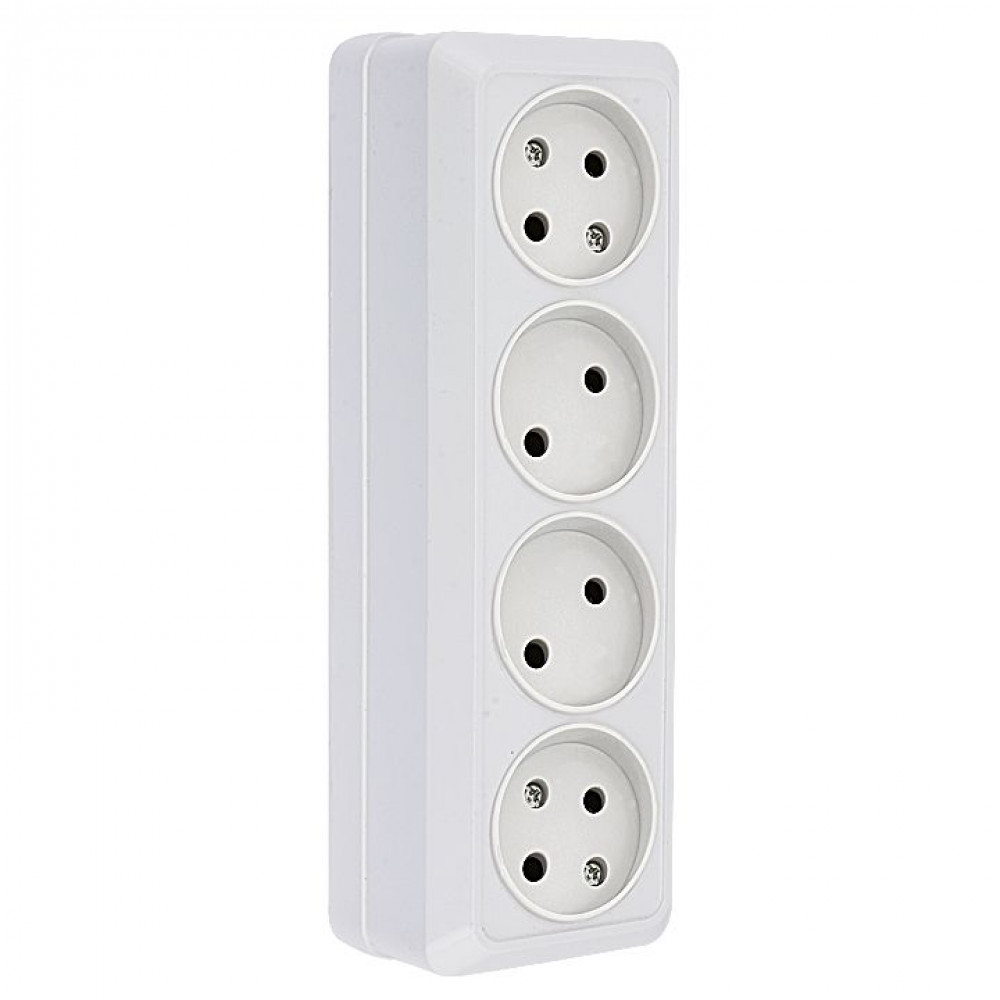 Рим Розетка 4-местная 10А без заземления белая ENR10-302-10, Розетка открытого монтажа