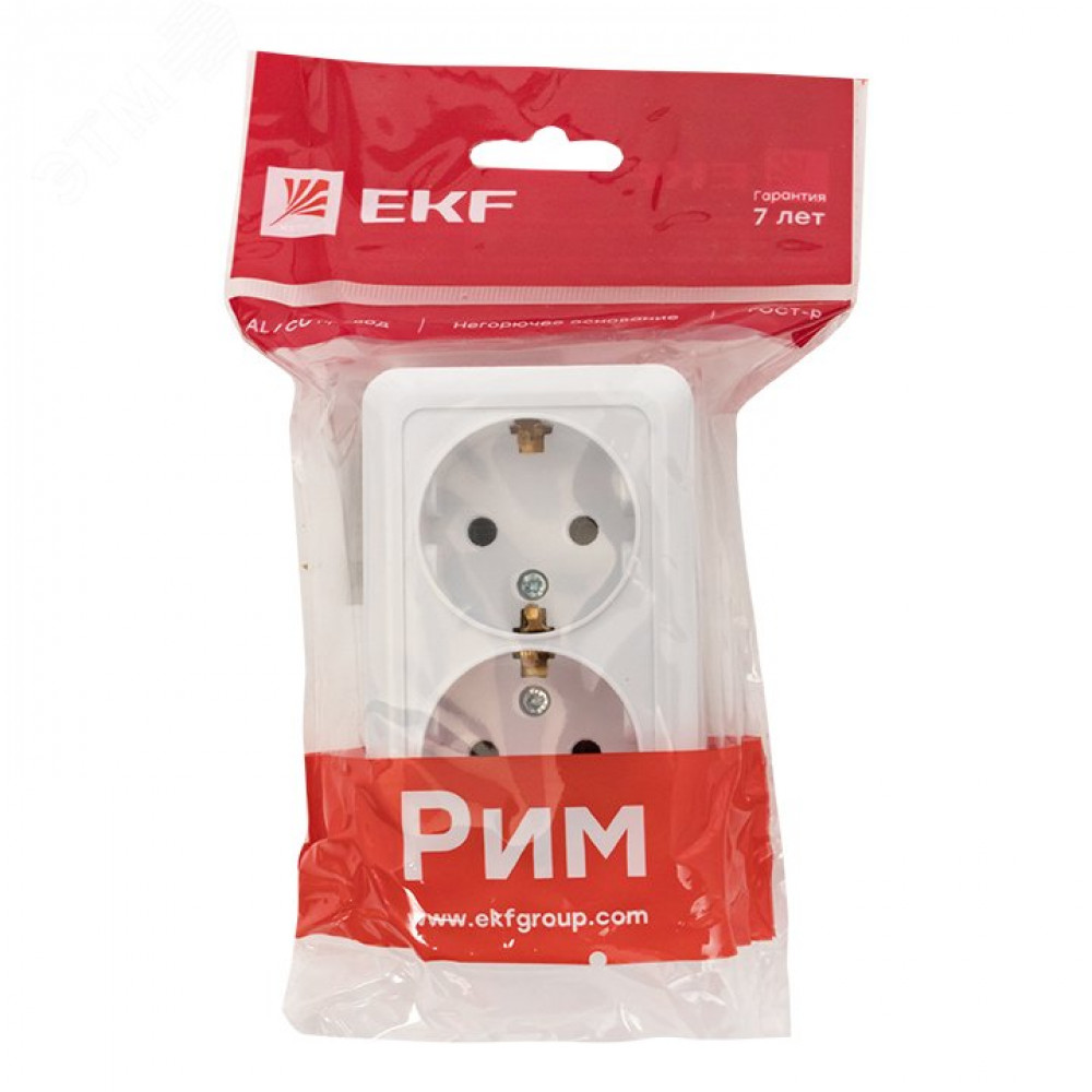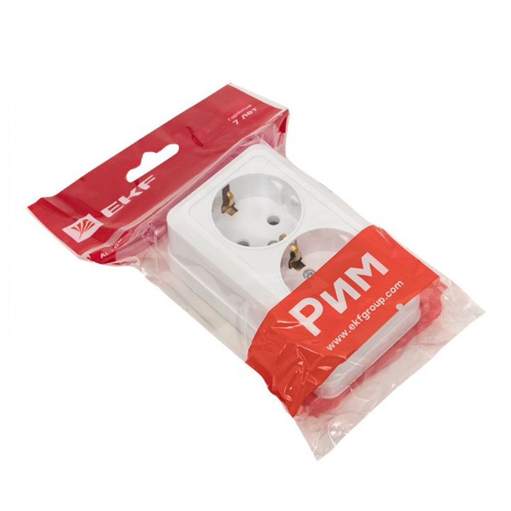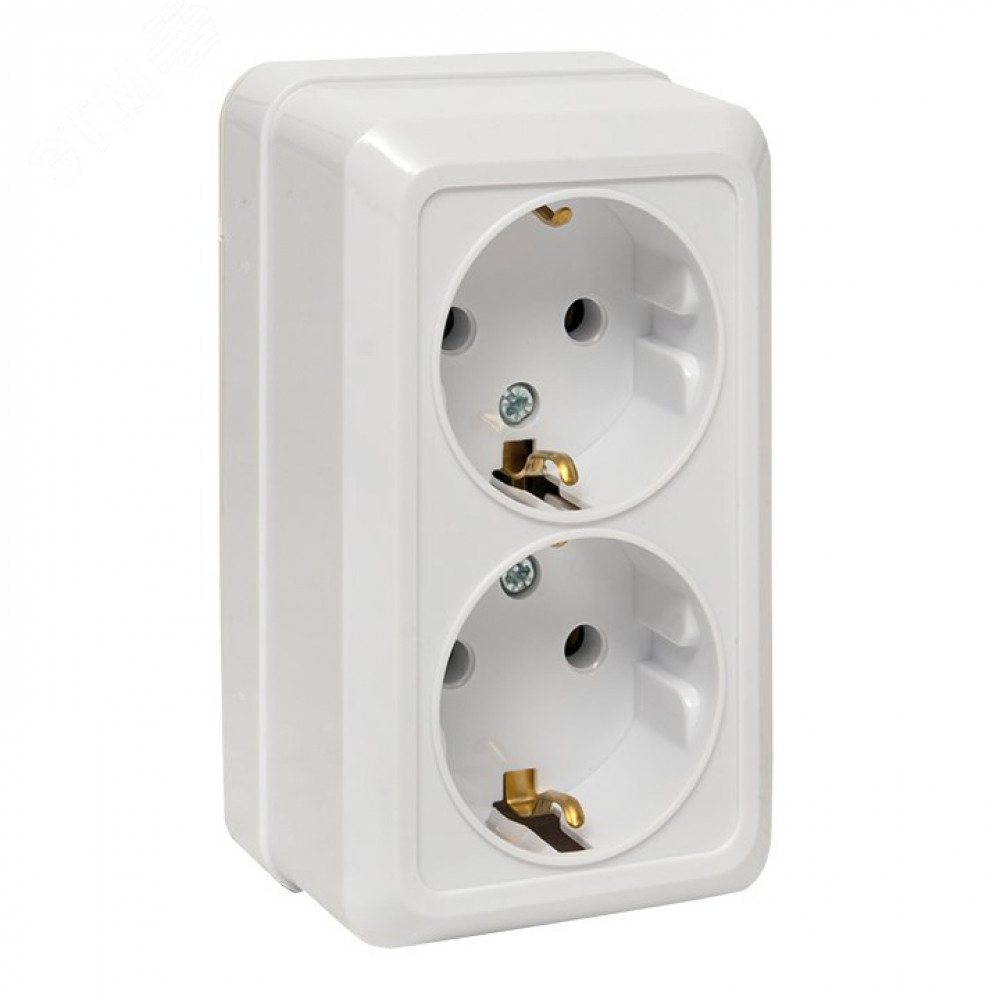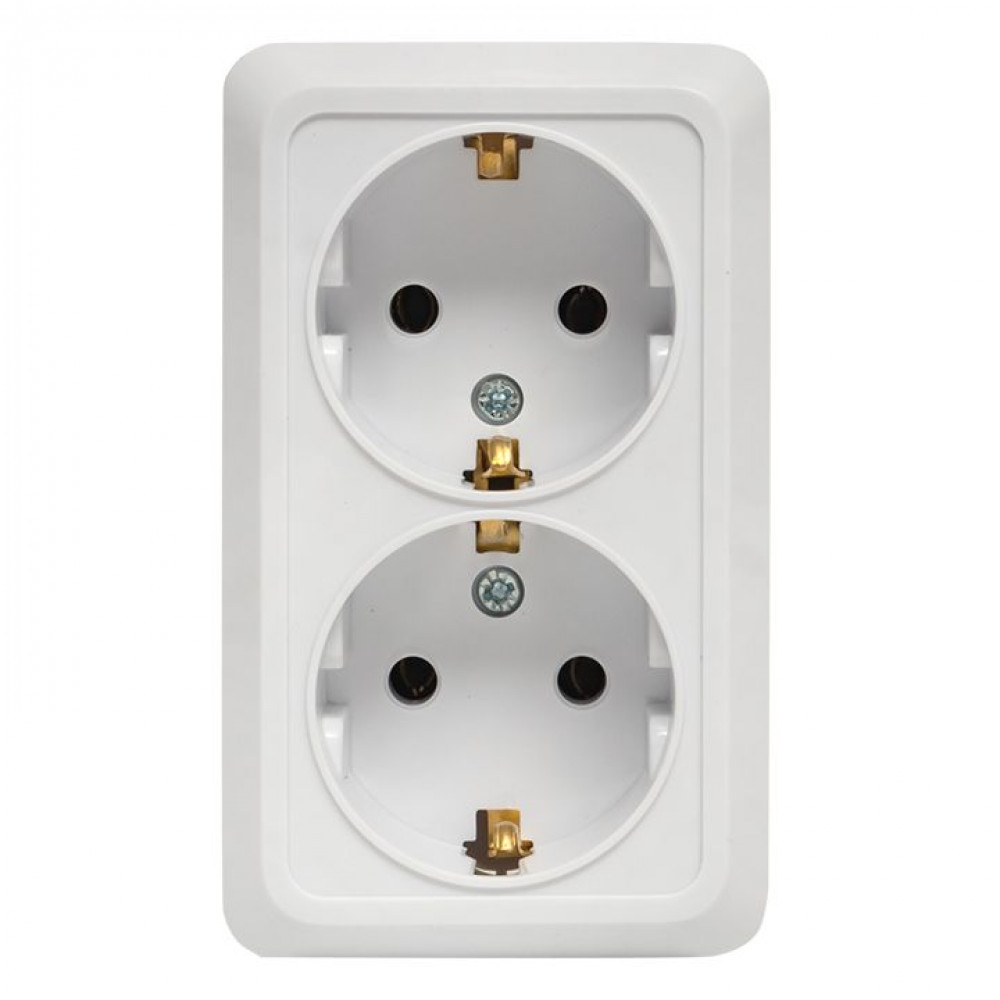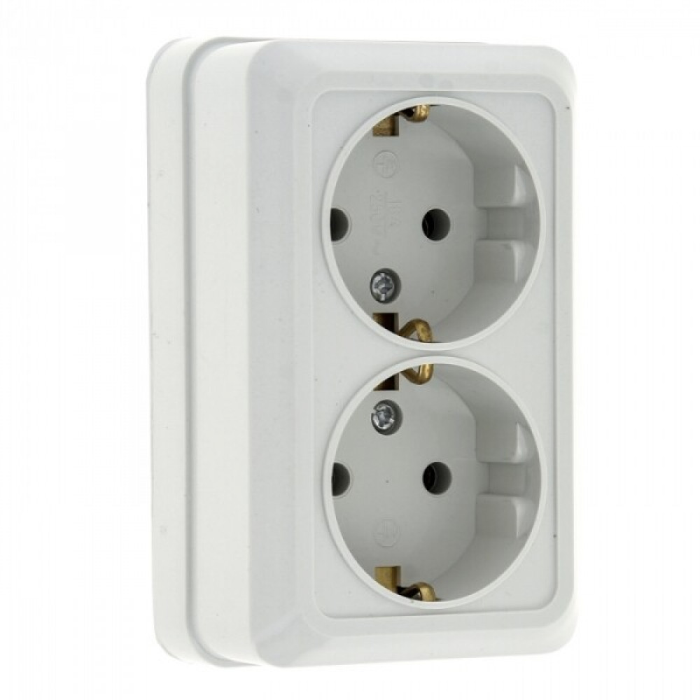 Рим Розетка 2-местная 16А с заземлением белая ENR16-128-10, Розетка открытого монтажа