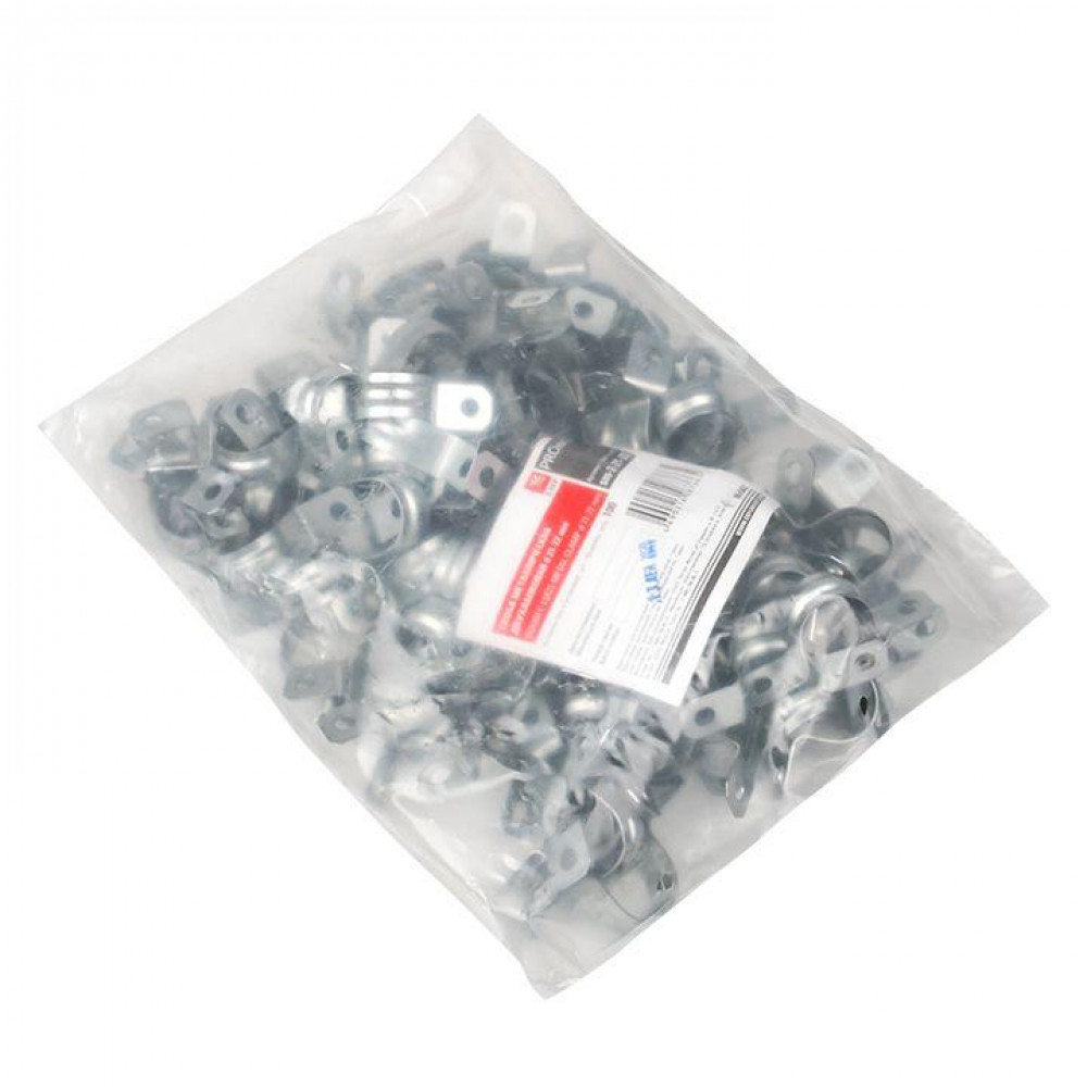 Описание Скоба металлическая двухлапковая d21-22 мм (100 шт) PROxima sm-2-21-22