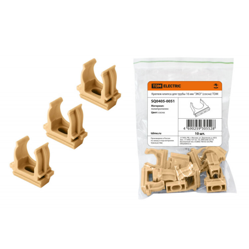 Крепеж-клипса для трубы 16 мм (10шт) "ЭКО" (сосна) SQ0405-0051, Труба и короб для прокладки кабеля