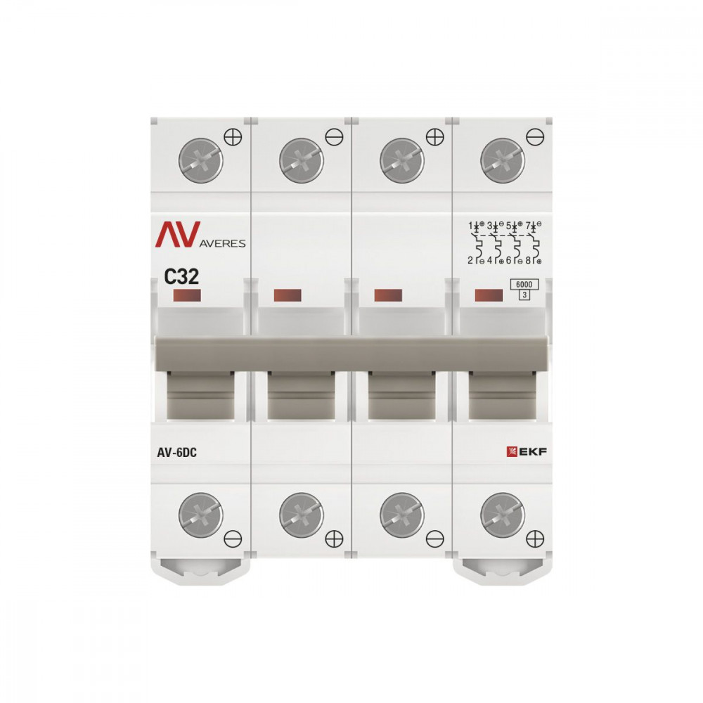 Описание mcb6-DC-4-32C-av Выключатель автоматический AV-6 DC 4P 32A (C) 6kA EKF AVERES(кр.30шт)