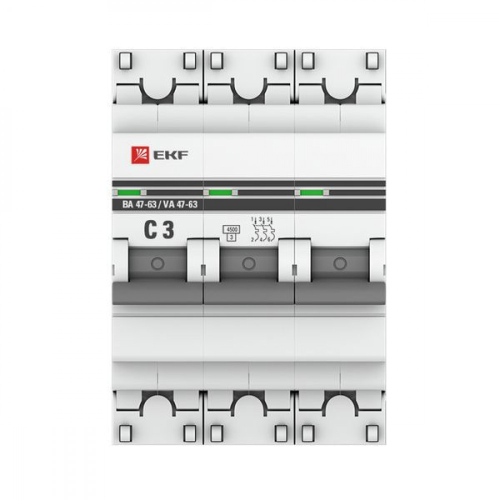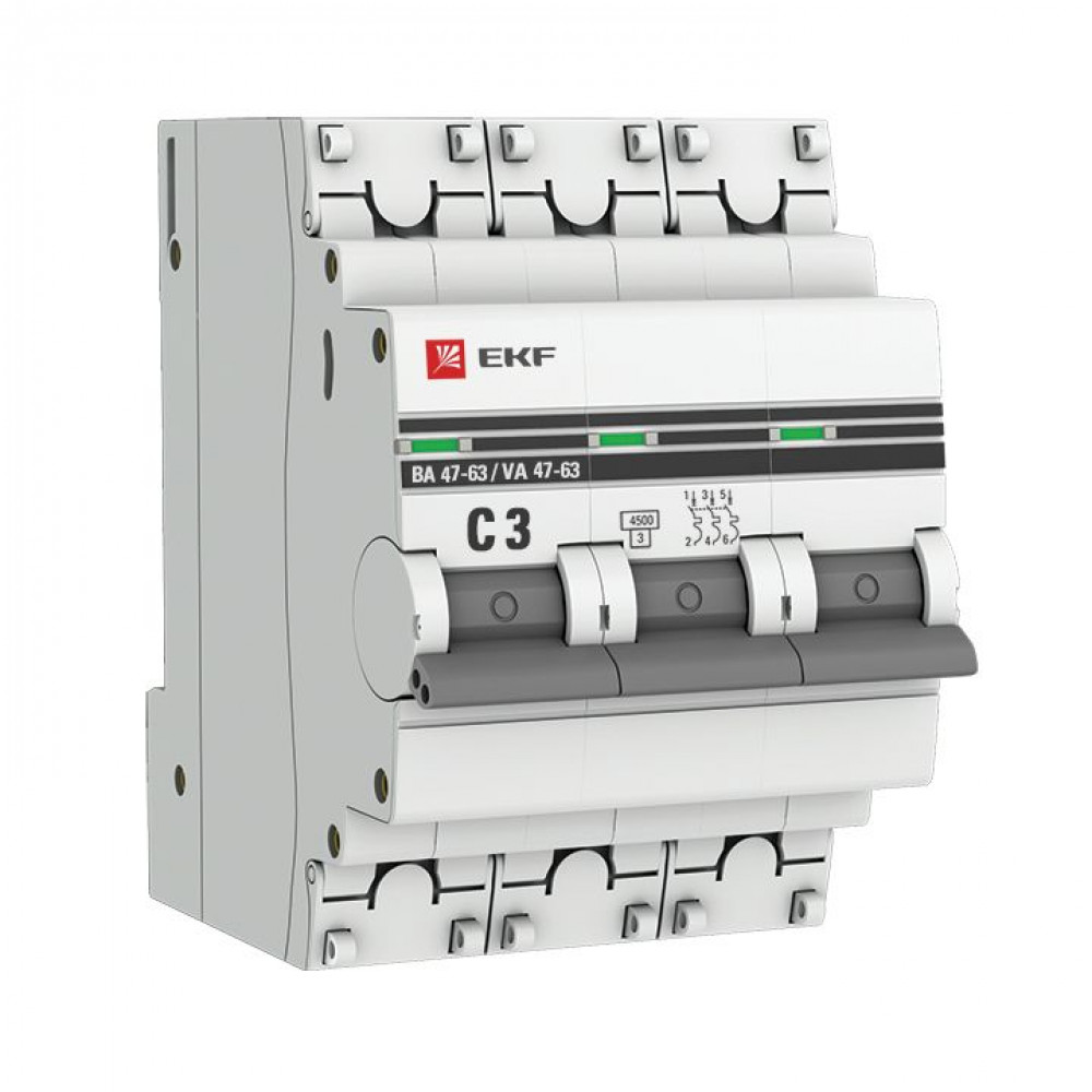 Автоматический выключатель 3P 3А (C) 4,5kA ВА 47-63 PROxima mcb4763-3-03C-pro, Выключатель автоматический модульный