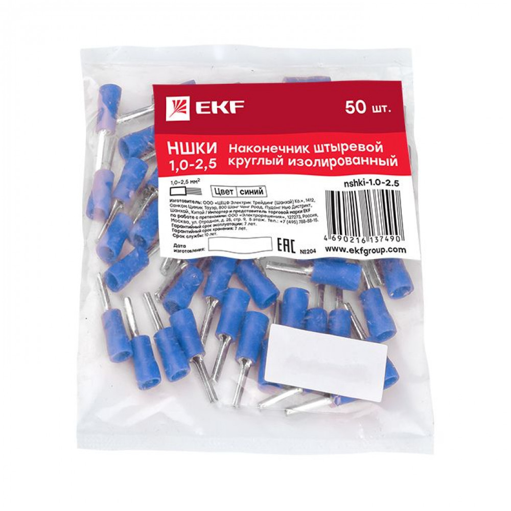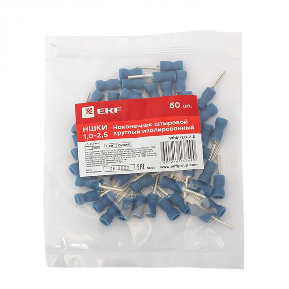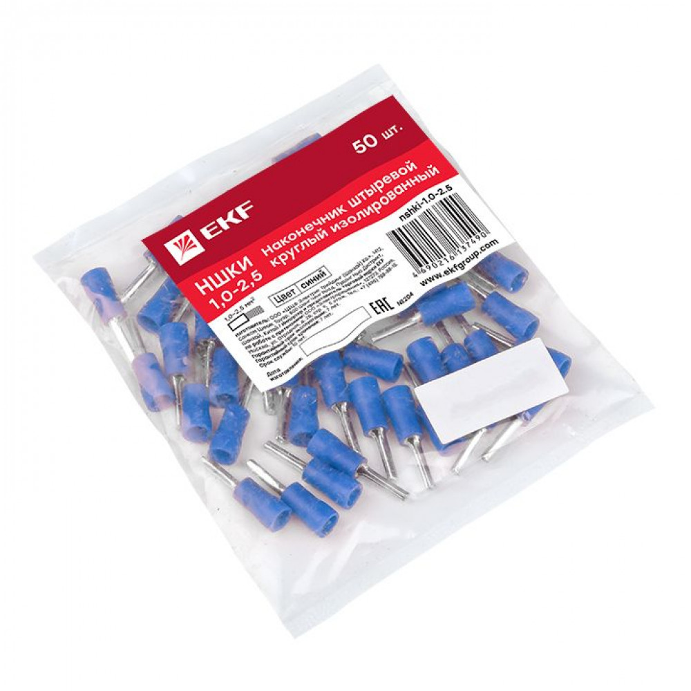 Описание Наконечник штыревой круглый изолированный НШКИ 1.0-2.5 (уп 50шт) PROxima nshki-1.0-2.5