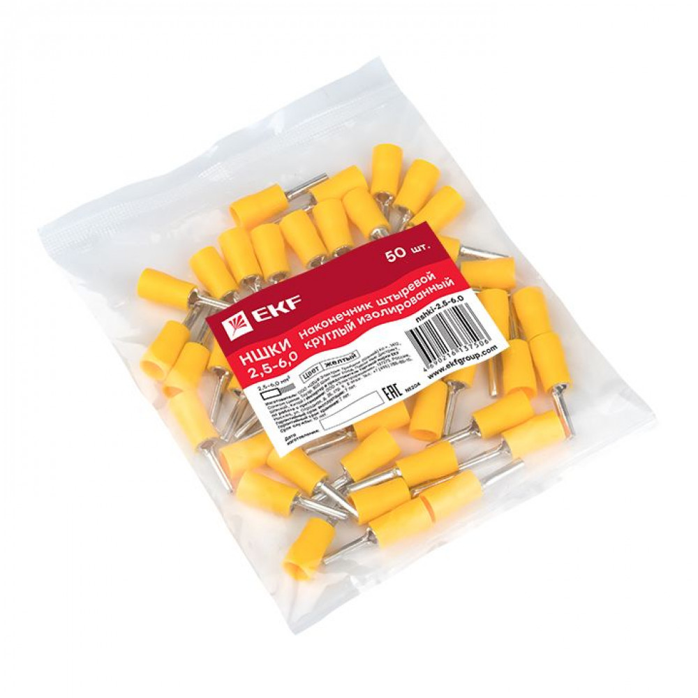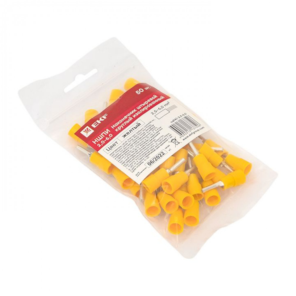 Наконечник штыревой круглый изолированный НШКИ 2.5-6.0 (уп 50шт) PROxima nshki-2.5-6.0, Наконечник, гильза