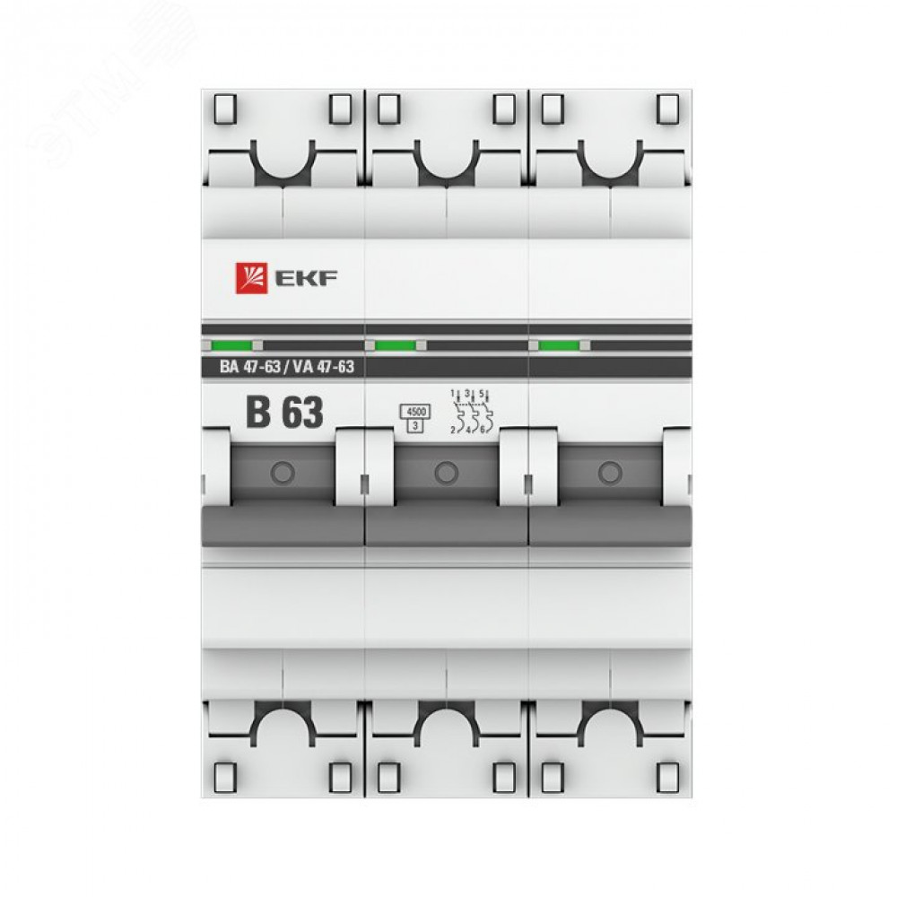 Автоматический выключатель 3P 63А (В) 4,5kA ВА 47-63 PROxima mcb4763-3-63B-pro, Выключатель автоматический модульный