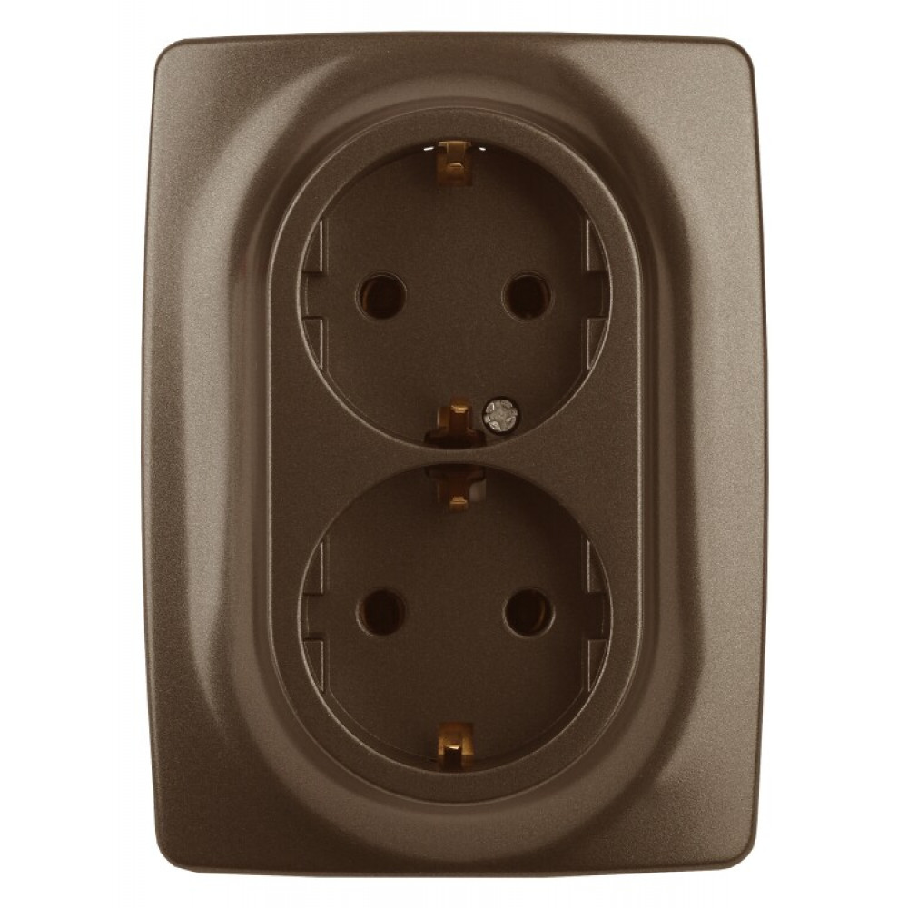 Описание 12-2108-13 Розетка 2X2P+E Schuko со шторками, 16A-250В, IP20, 2, бронза (10/100/2000) Б0036449