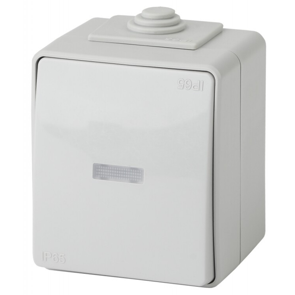 11-1610-03 Переключатель с подсветкой IP65, 10АХ-250В, ОУ, Эксперт, серый (10/100/1600) Б0035981, Выключатель и переключатель открытого монтажа