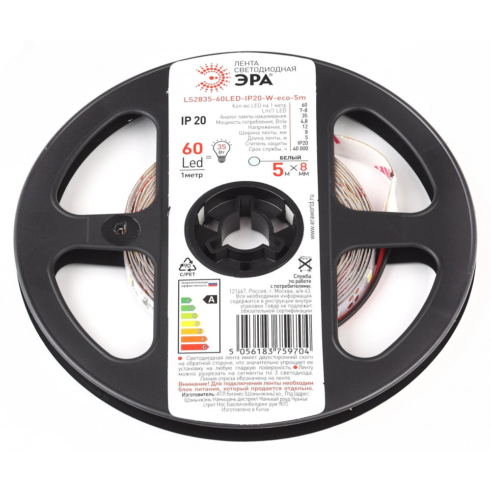 Описание Лента светодиодная LS2835-4,8-60-12-6500K-IP20-1 year-5m (100/2100) Б0035586