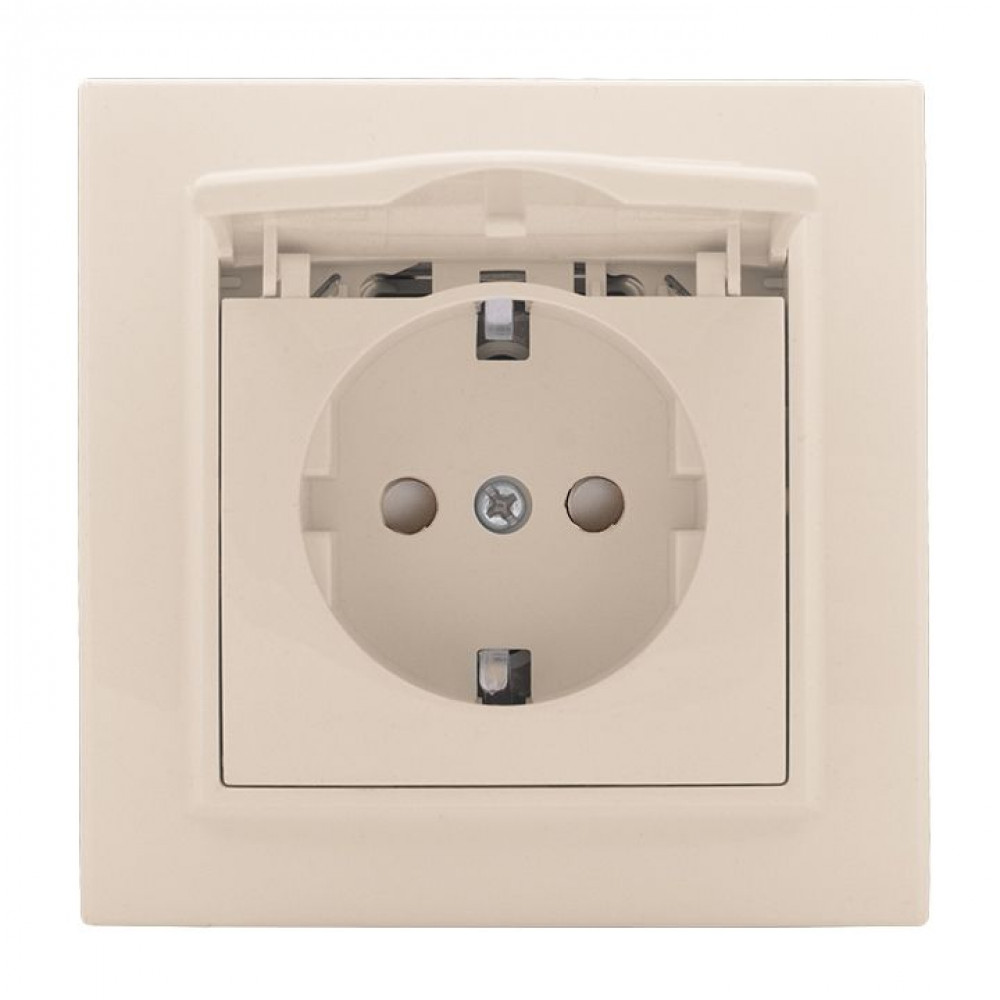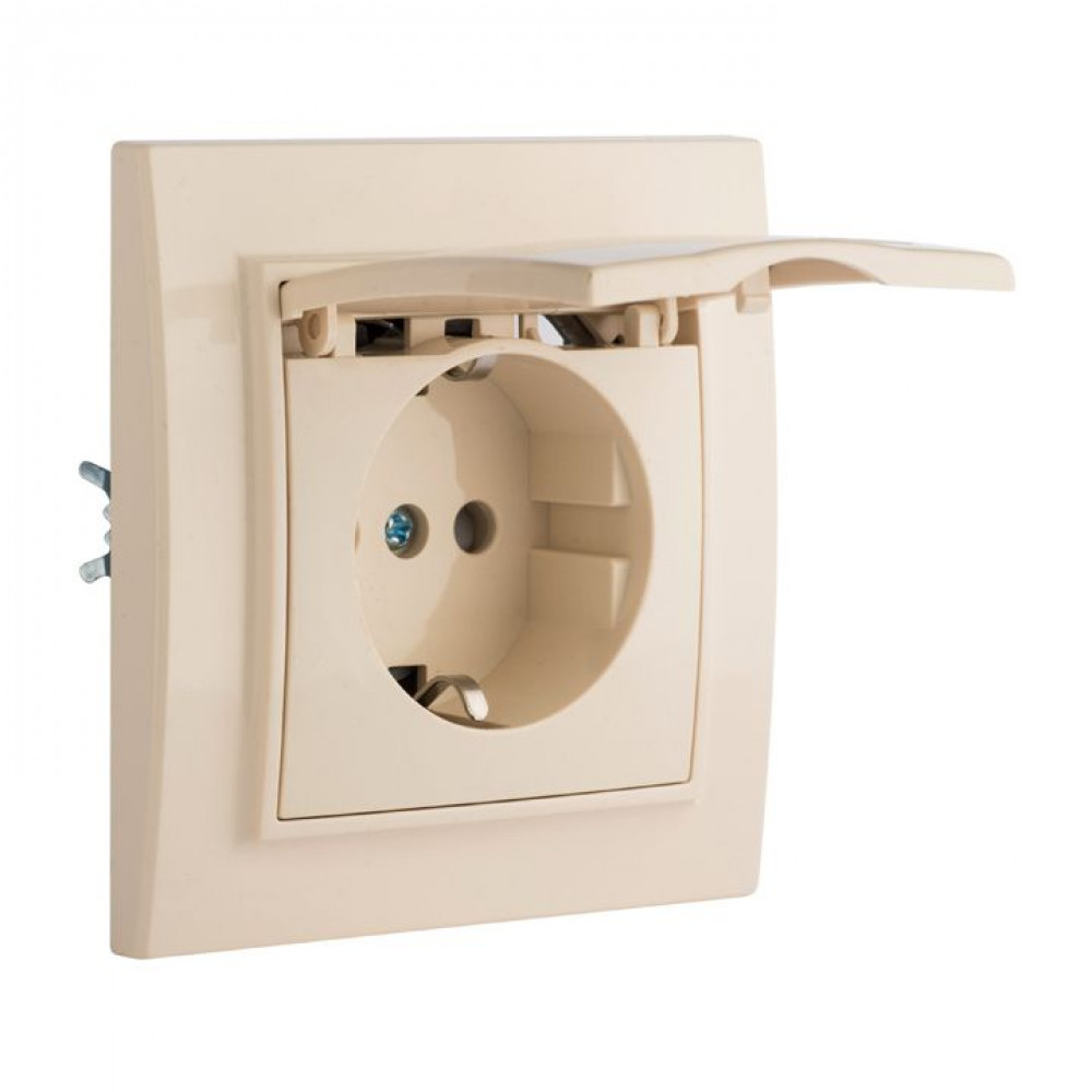 Розетка 1-местная СП с/з Минск с крышкой 16А бежевая с защ. штор. ERR16-029-200, Розетка скрытого монтажа