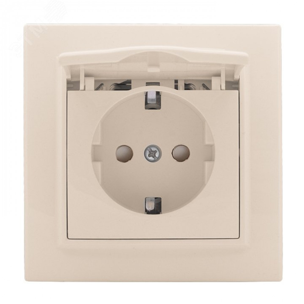 Описание Розетка 1-местная СП с/з Минск с крышкой 16А бежевая с защ. штор. ERR16-029-200