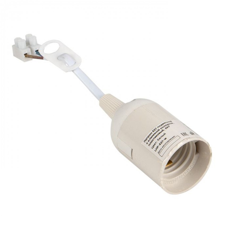 Описание Патрон Е27 подвесной с клеммной колодкой пластик белый PROxima LHP-E27-w