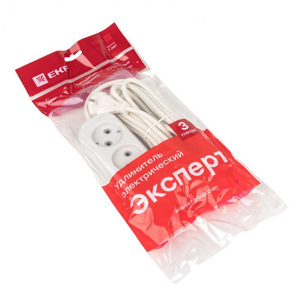 Доставка Удлинитель "Эксперт" 3 гнезда 5 метров 10А/2,2кВт без заземления ПВС 2х0,75 PROxima UBA10-275-3-05