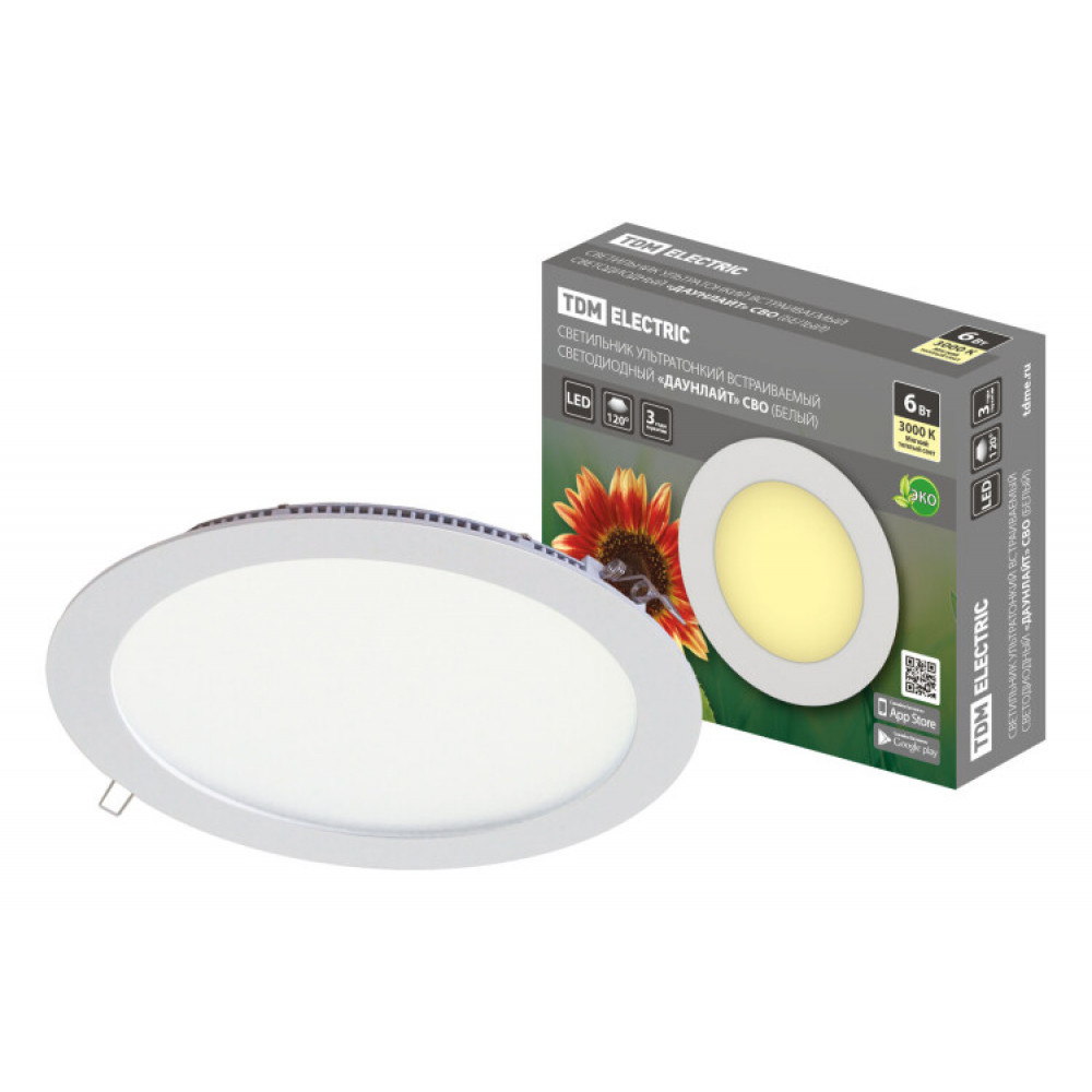 Описание Светильник ультратонкий встраиваемый светодиодный "Даунлайт" СВО (белый) 6 Вт 3000К SQ0329-0027