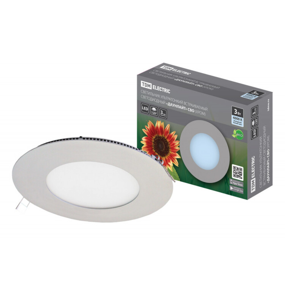 Описание Светильник ультратонкий встраиваемый светодиодный "Даунлайт" СВО (хром) 3 Вт 4000К SQ0329-0105