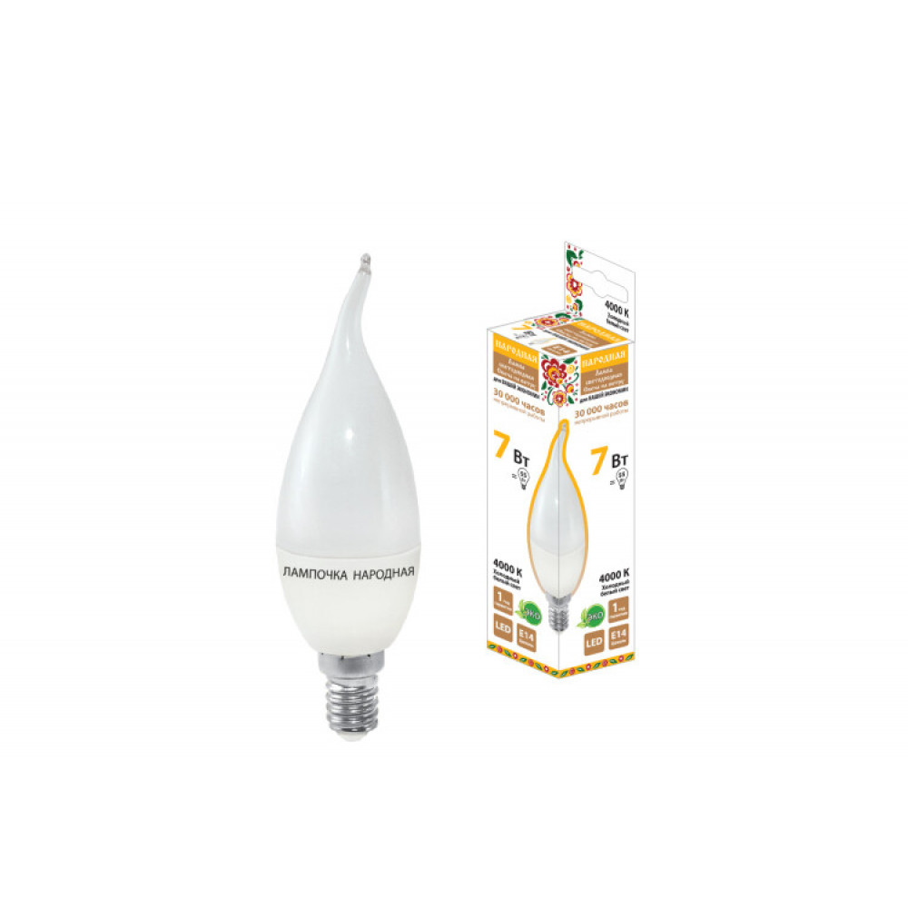 Лампа светодиодная WFС37-7 Вт-230 В -4000 К–E14 (свеча на ветру) Народная SQ0340-0190, Лампа светодиодная