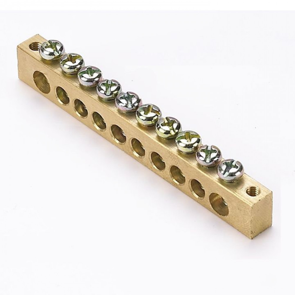 Шина PEN "ноль-земля" 8х12 10 отвер. латунь крепеж по краям PROxima sn0-125-10-k, Блок клеммный и нулевая шина