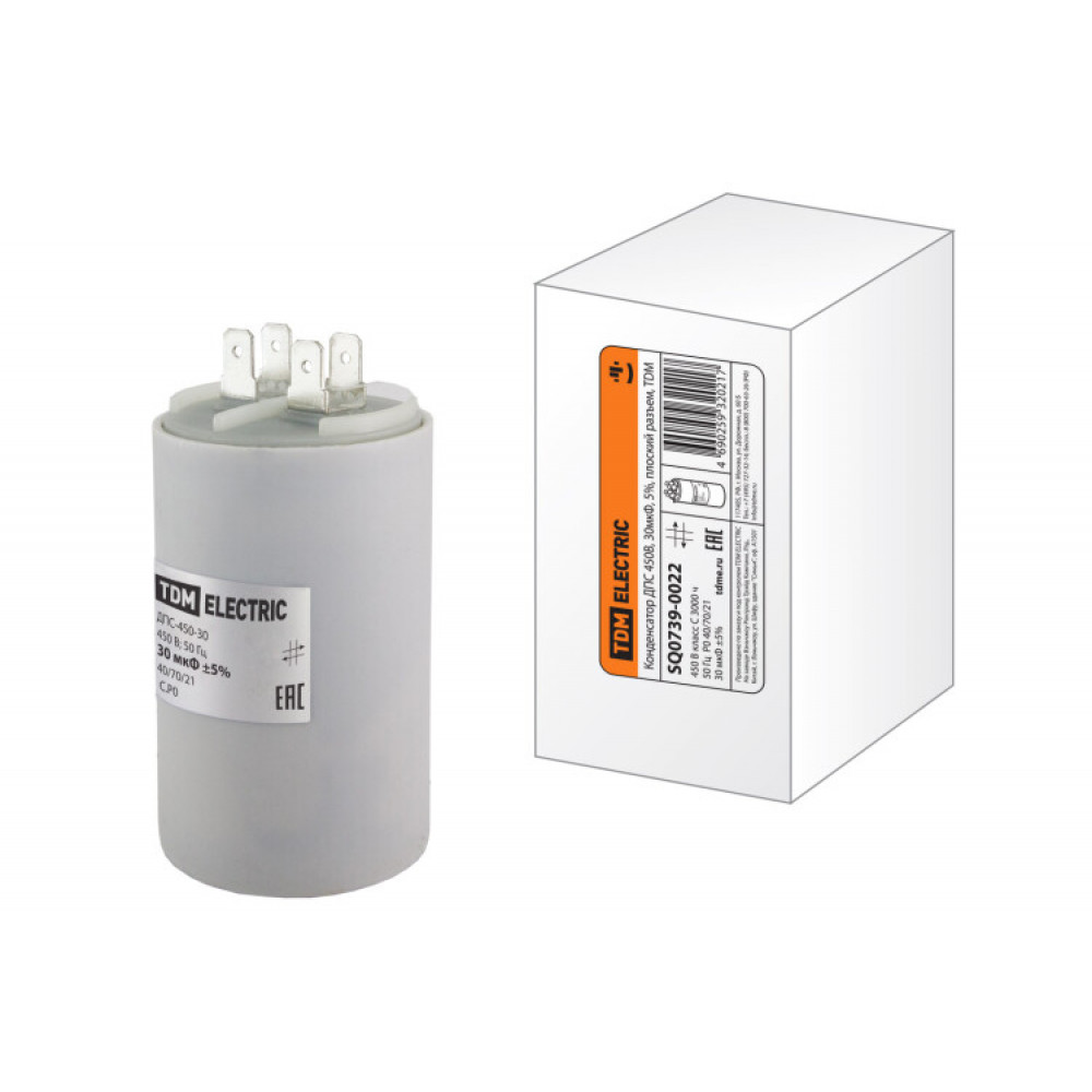 Конденсатор ДПС 450В, 30мкФ, 5%, плоский разъем, SQ0739-0022, Электродвигатель общепромышленный
