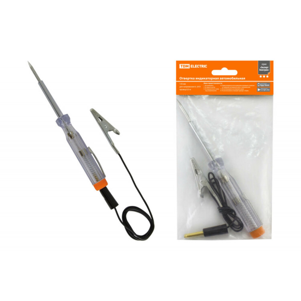 Описание Отвертка-пробник (индикатор) автомобильная 135 мм, 6-24В, провод 0.5м, "ЭкспертЭлектрик" SQ1015-0005
