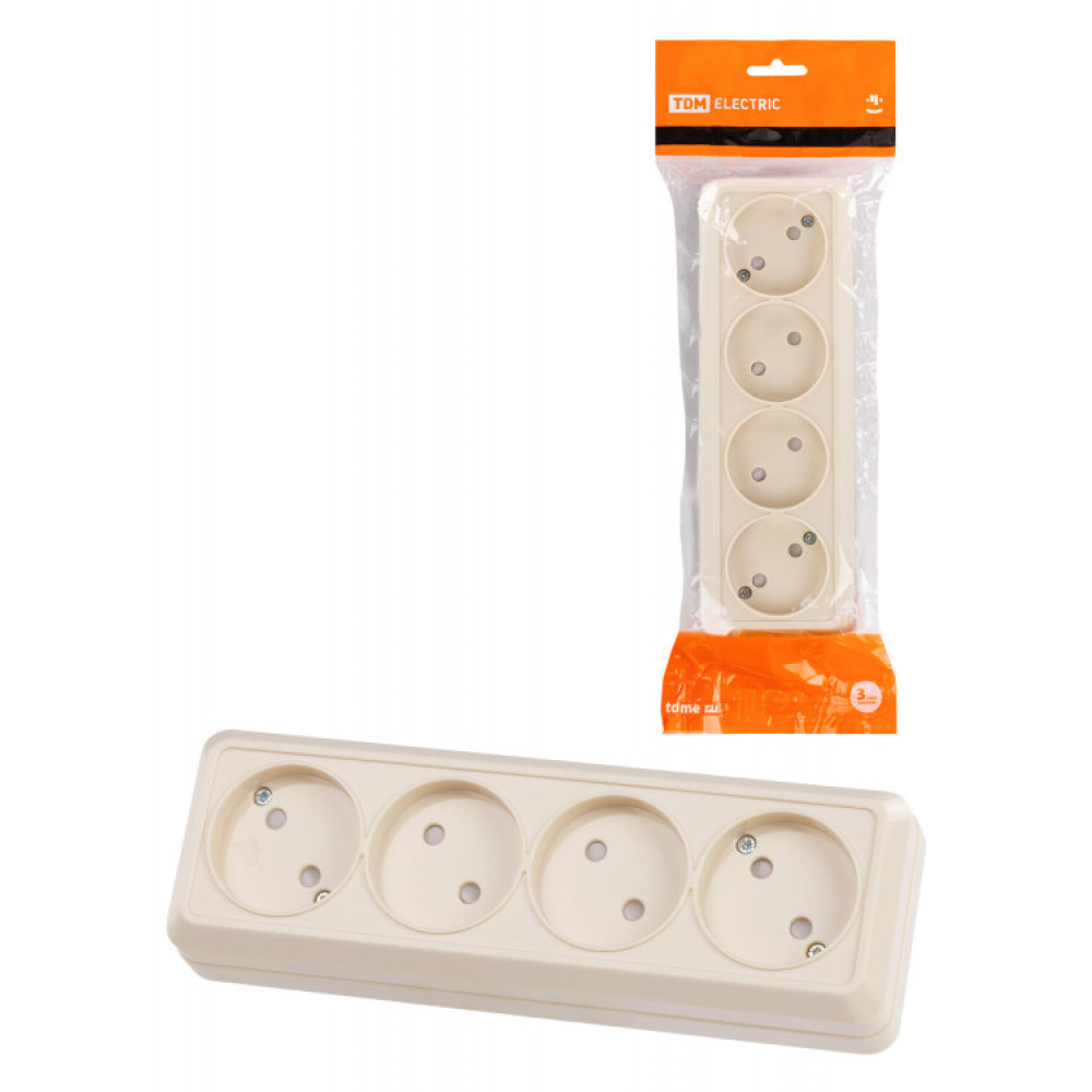 Розетка 4-х местная горизонтальная 2П открытой установки IP20 10A с з/ш сл. кость "Ладога" SQ1801-0229, Розетка открытого монтажа