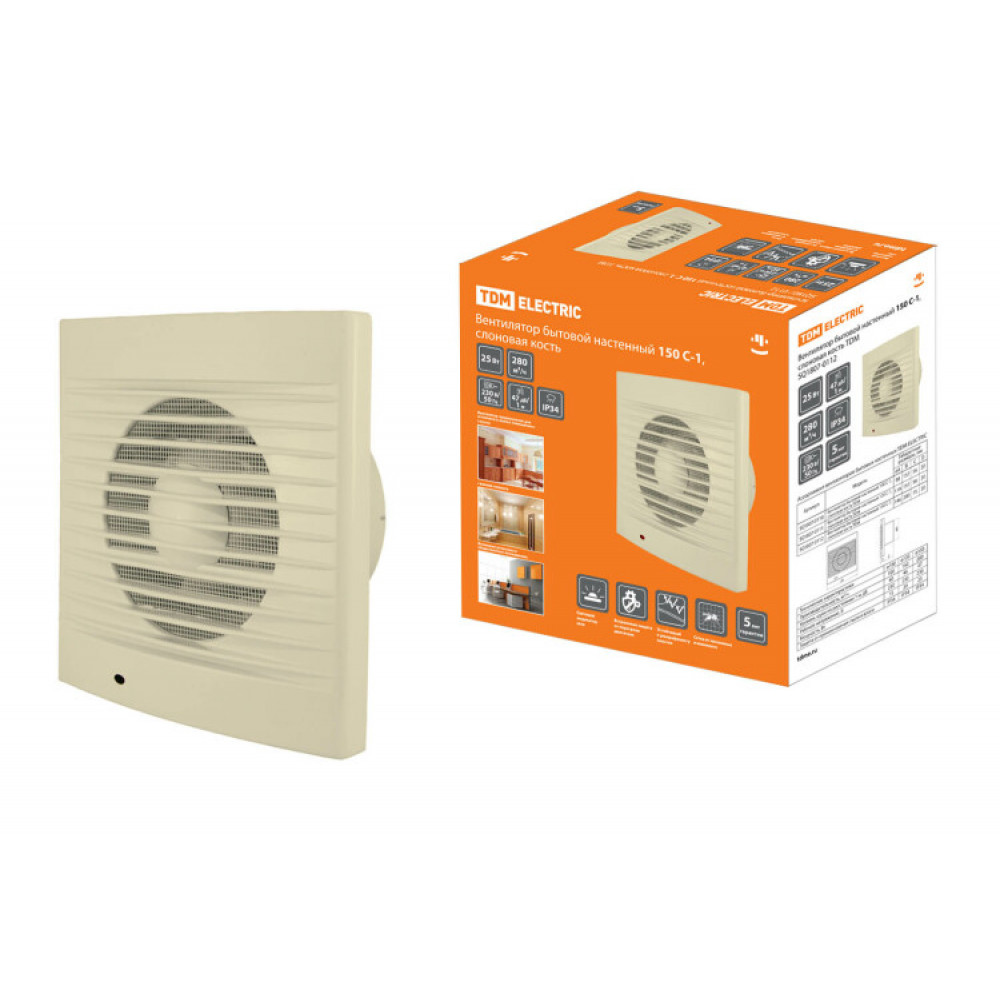 Вентилятор бытовой настенный 150 С-1, слоновая кость SQ1807-0112, Система вентиляционная