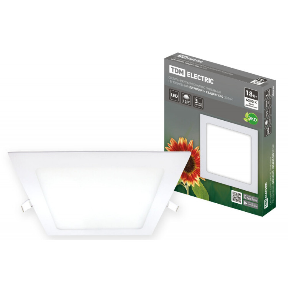 Описание Светильник ультратонкий встраиваемый светодиодный "Даунлайт" квадрат СВО (белый) 18 Вт 6500К SQ0329-0121