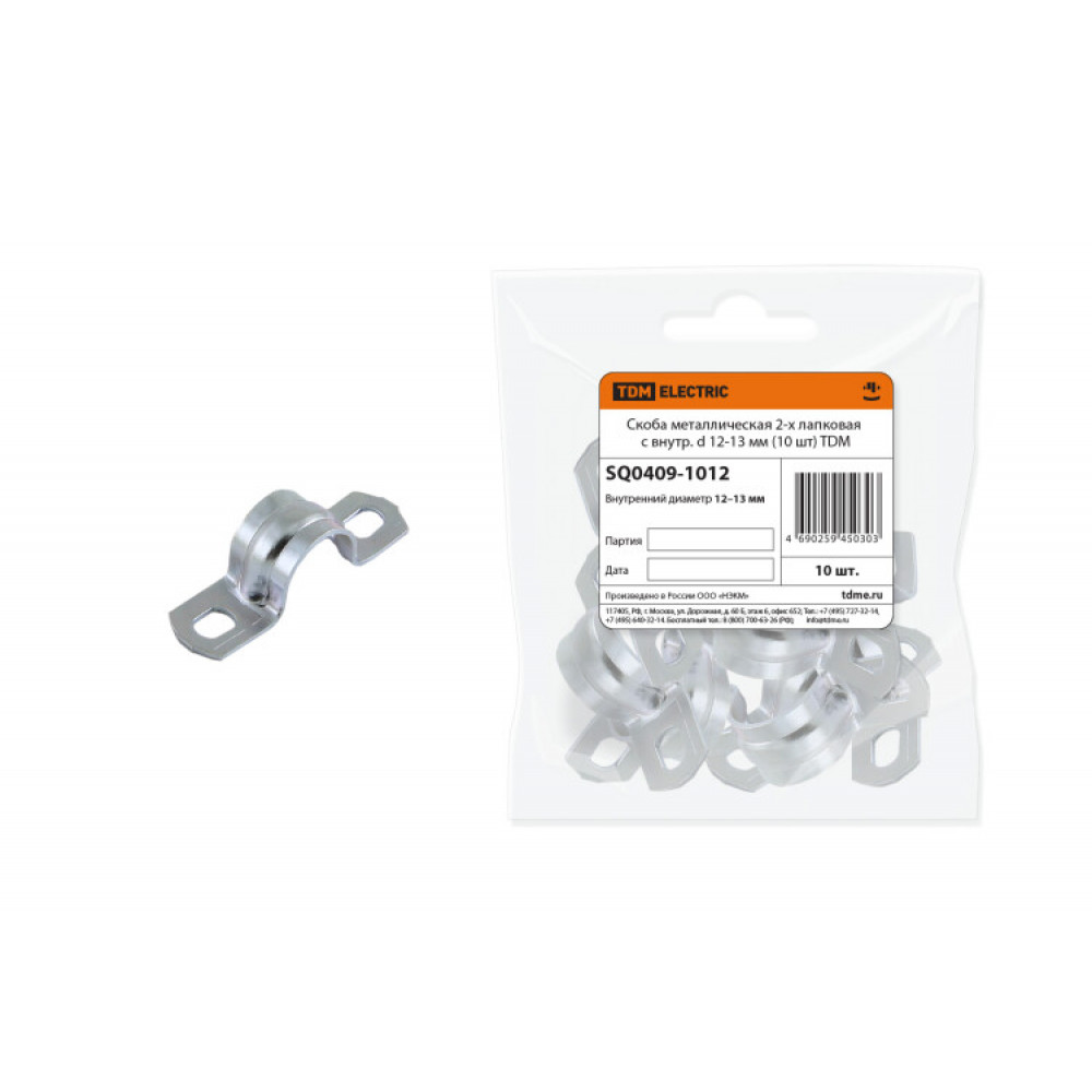 Описание Скоба металлическая 2-х лапковая с внутр. d 12-13 мм (10 шт) SQ0409-1012
